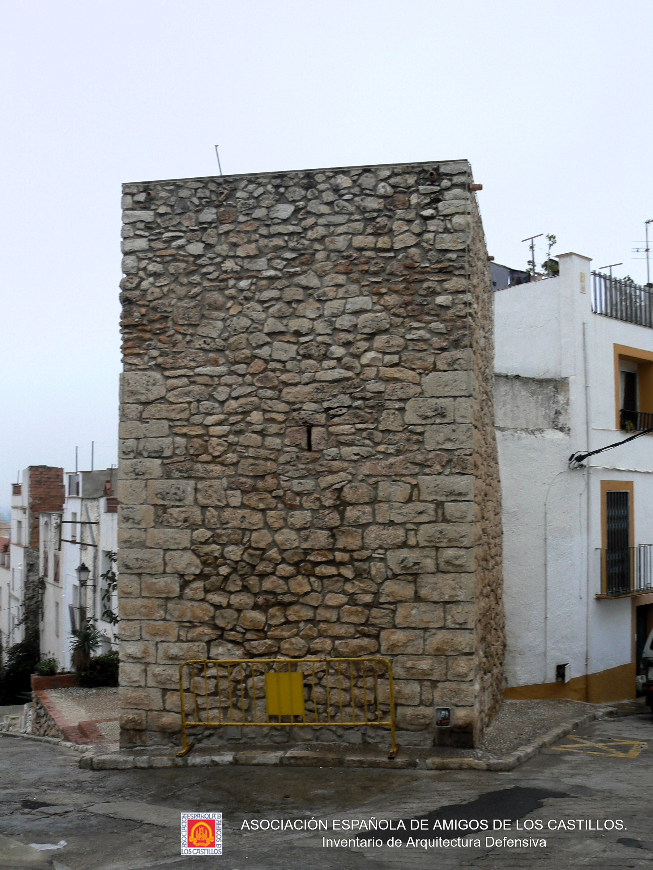 El recinto amurallado era de planta cuadrada, con cuatro puertas. En la actualidad sólo queda visible una torre.