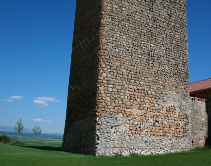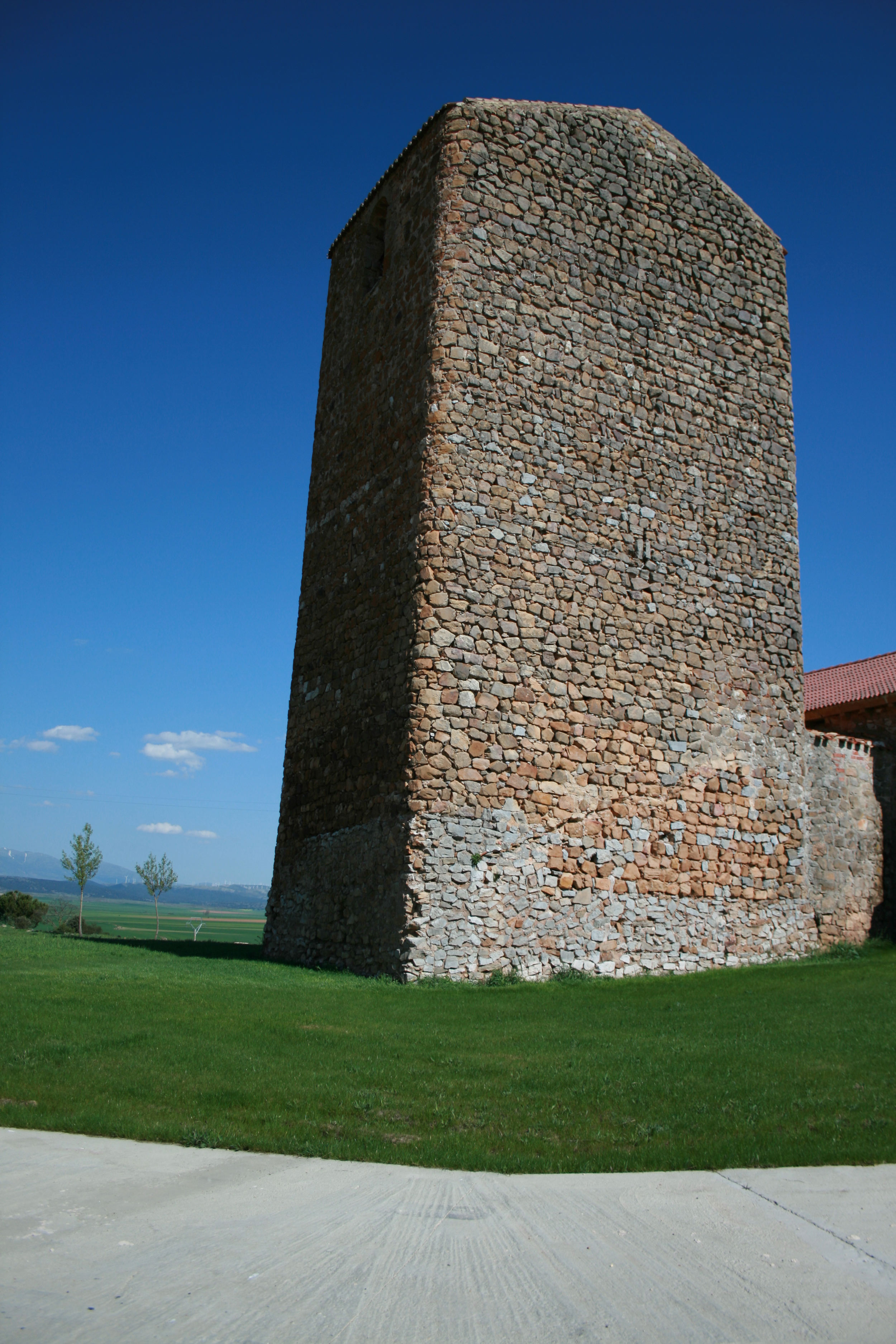 Torre de gran solidez, con esquinas redondeadas, aprovechada como campanario.