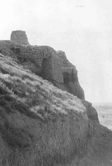 Torre principal de planta rectangular. Brocal circular de la cisterna.