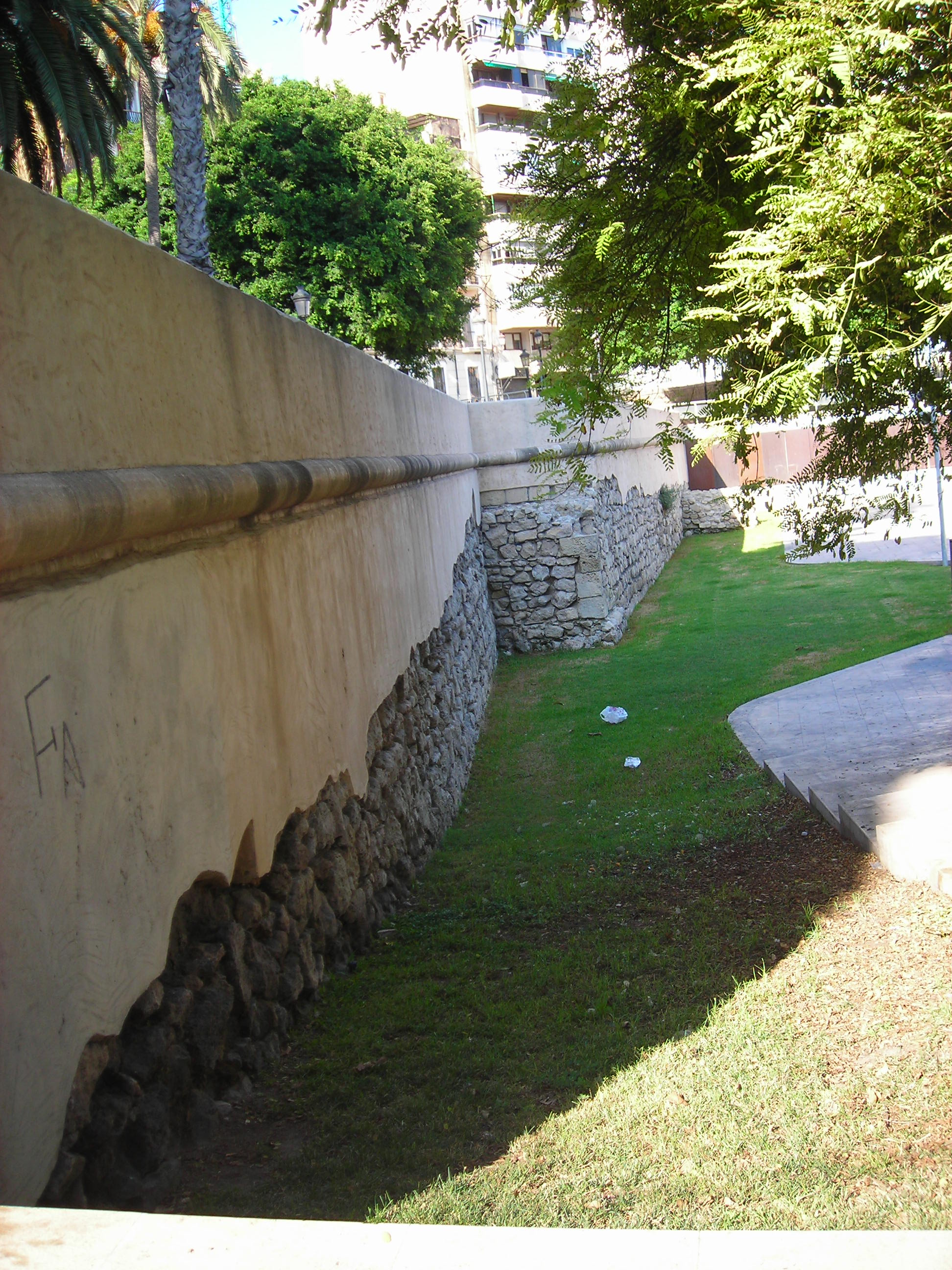 Autor: Joanbanjo Archivo / Depósito: Wikipedia Observaciones: https://es.wikipedia.org/wiki/Murallas_de_Alicante#/media/Archivo:Avantmuralla_medieval_o_barbacana,_Alacant_(La_Ciutat_Descoberta).JPG