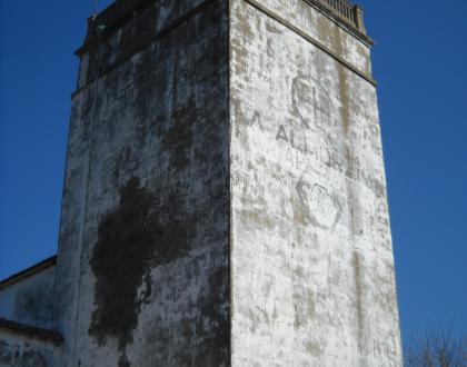 Actualmente la torre medieval se conserva completa pero está enmascarada con cemento y cal.