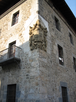 Escudo angular en la fachada principal, perteneciente a la familia de los Alzola.