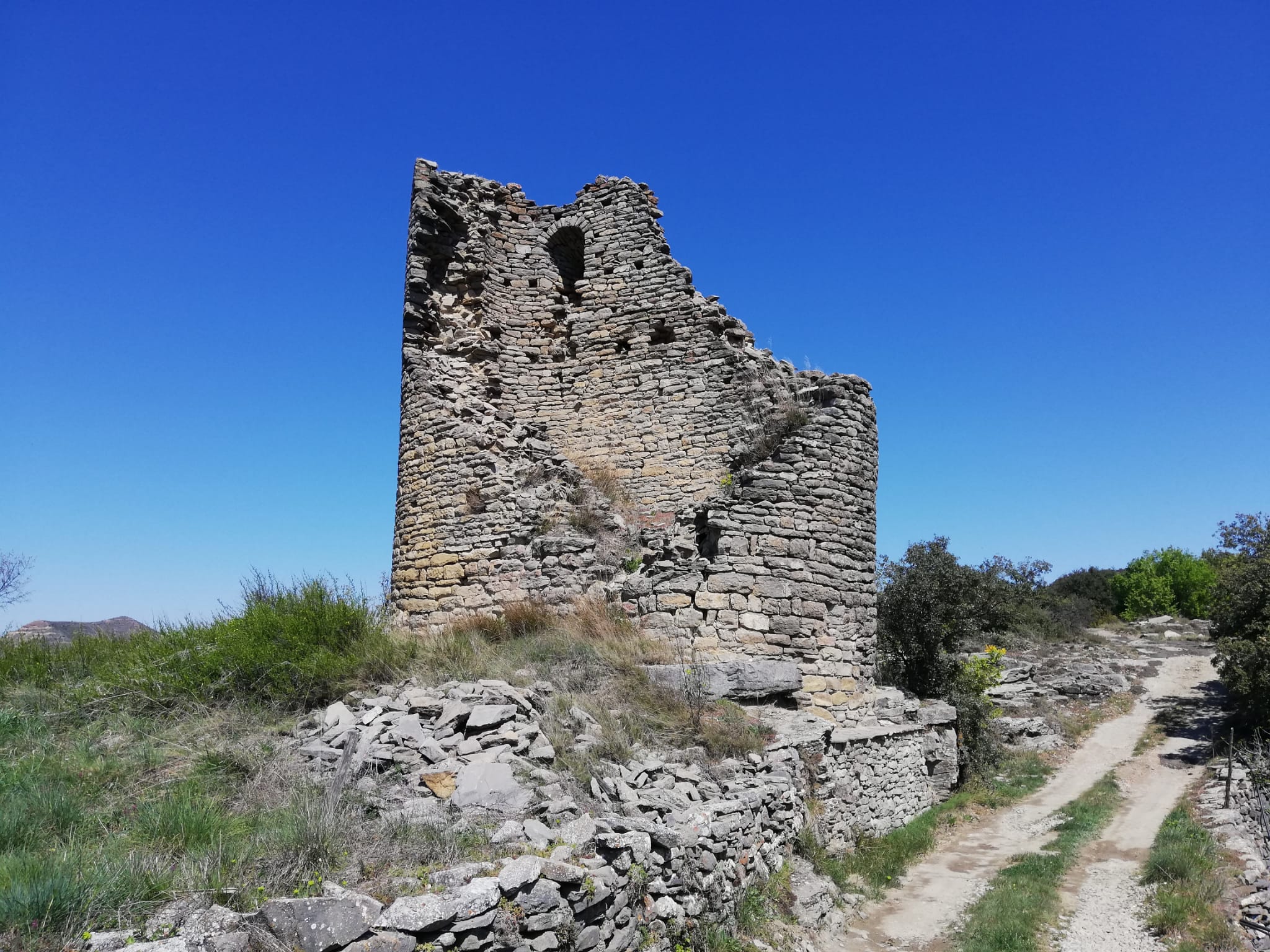Tiene una planta alargada, de forma casi elíptica. Queda una saetera en el segundo piso.