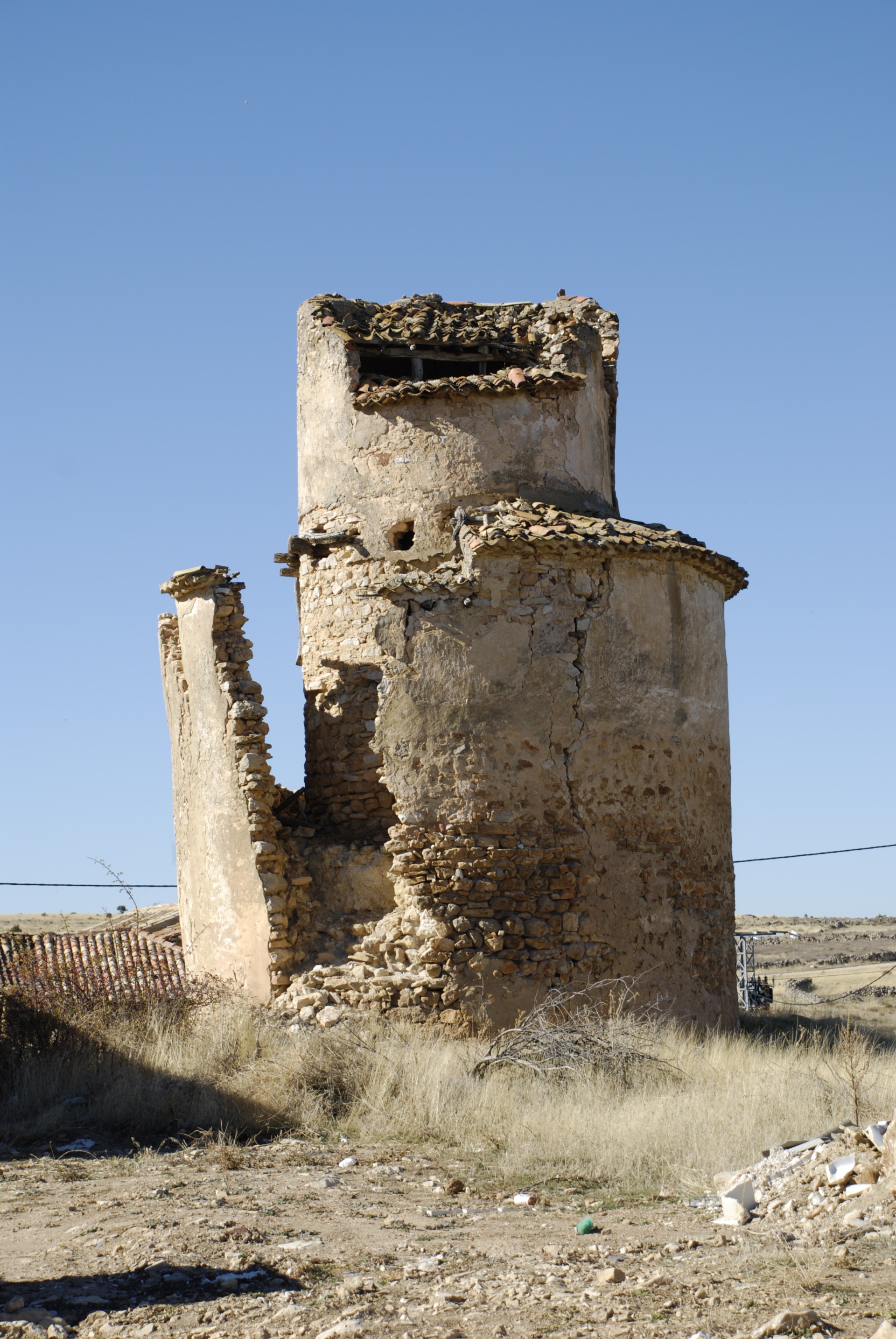 Torre de forma cilíndrica con acceso en altura situada en lo alto de una colina donde ahora se asienta el pueblo de Nograles. No conserva (si la tuvo) merlatura ni defensa alguna. El palomar que la rodea es claramente posterior y no tiene finalidad defensiva.