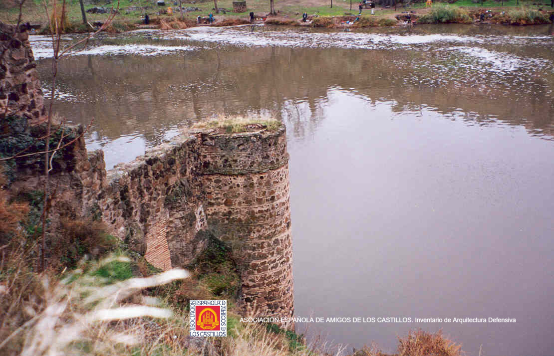 "En época islámica hubo puente de barcas que fue protegido por una coracha, la de San Esteban, documentada desde 1101, siendo obra cristiana sobre antecedentes islámicos. La torre es cristiana.