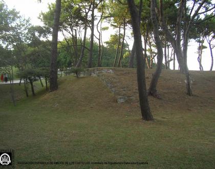 Batería de costa con cuatro asentamientos a barbeta y asentamiento blindado bajo bóveda de hormigón para repuestos.