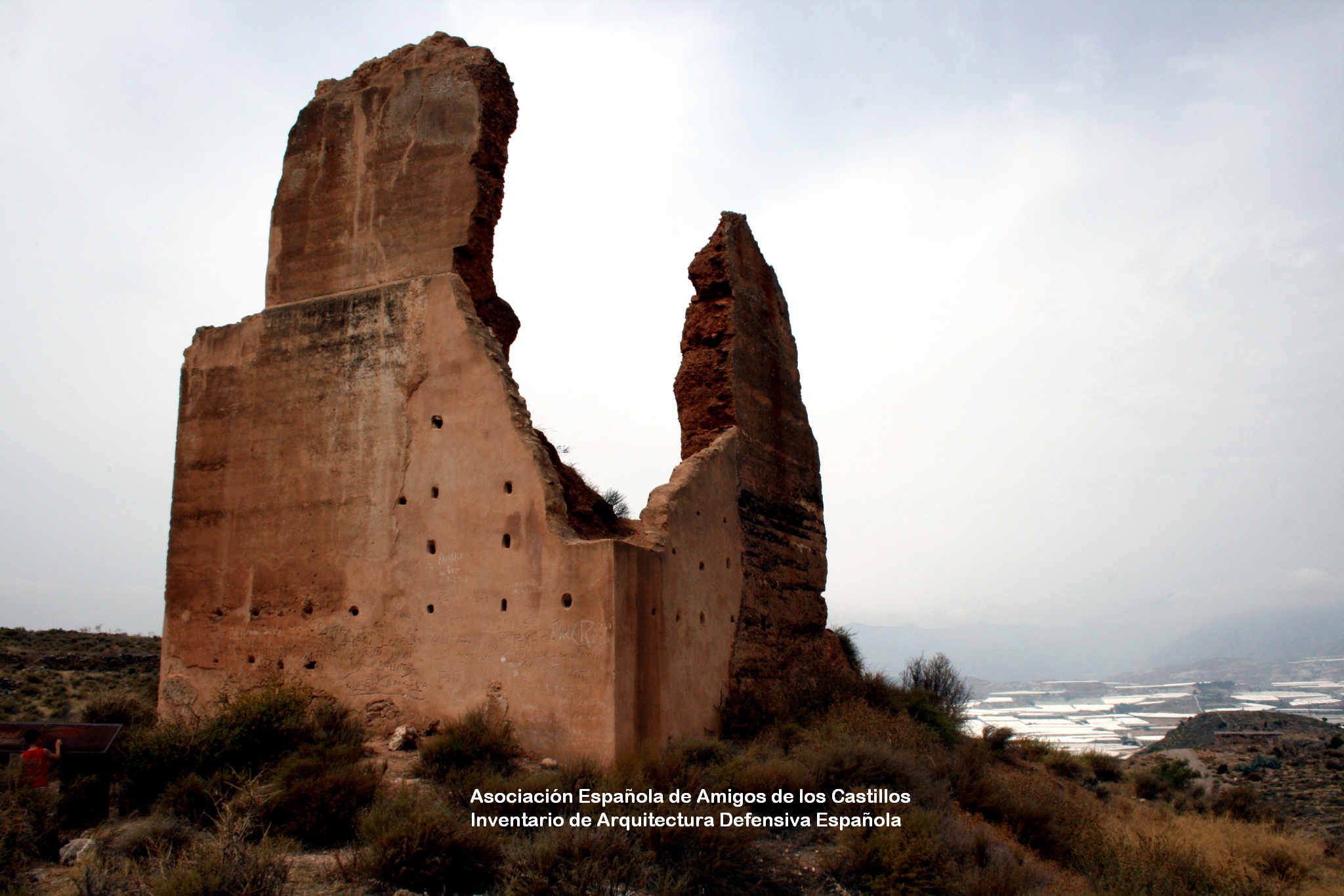 Ocupa 300 x 500 m, adaptándose al cerro. Presenta varios cubos rectangulares (23) en planta, con varios enteros, todos en tabiya. En el lado oeste tiene tres algibes, casi destrozados. A veces el muro es doble, para proteger mejor el flanco.