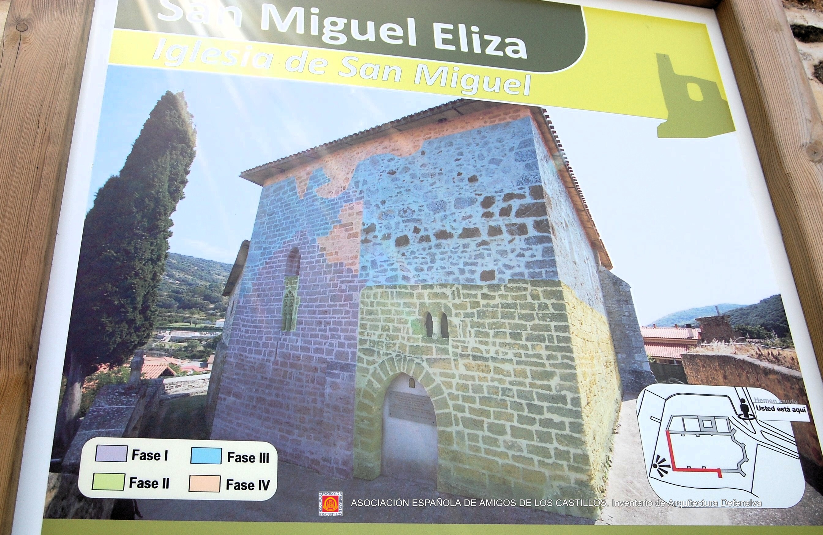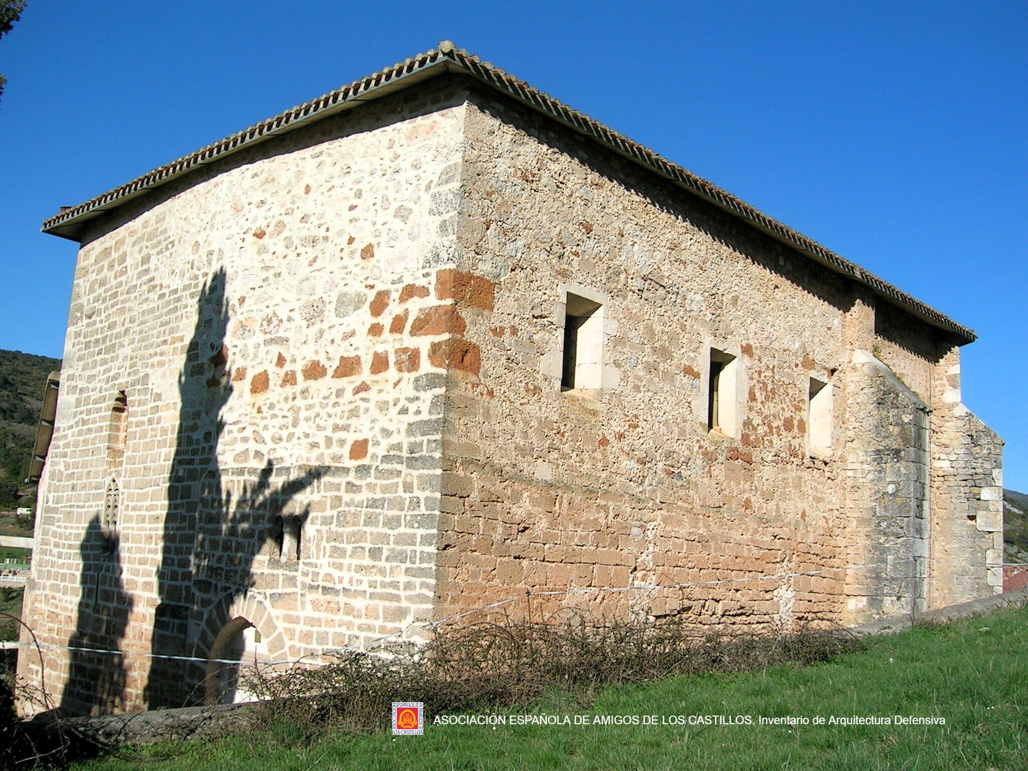 La fachada oeste de la iglesia conserva restos de esta torre