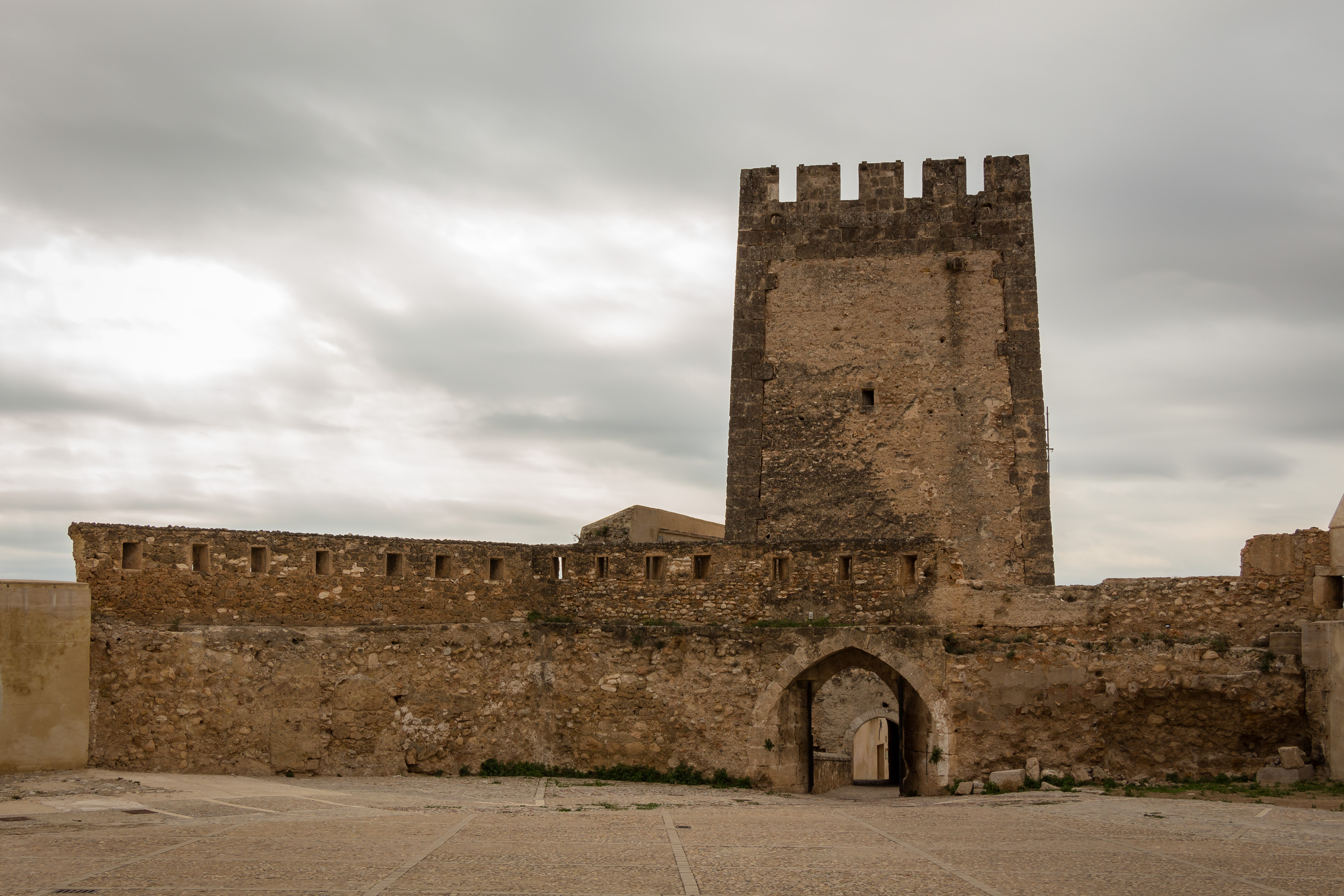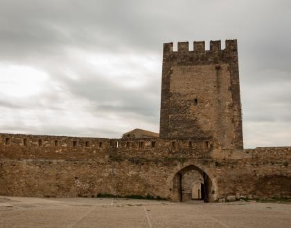 Tiene acceso a través de la Torre del Homenaje (de 30 m. de altura y almenada), tras cruzar un largo puente. En la parte oeste del recinto hay una torre con puerta defendida por doble rastrillo y con otras dos torres cuadradas más bajas a los lados de tapial.