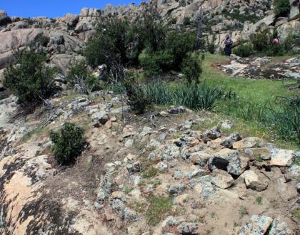 En los aterrazamientos, vestigios de edificaciones, principalmente viviendas rectangulares de época visigoda.