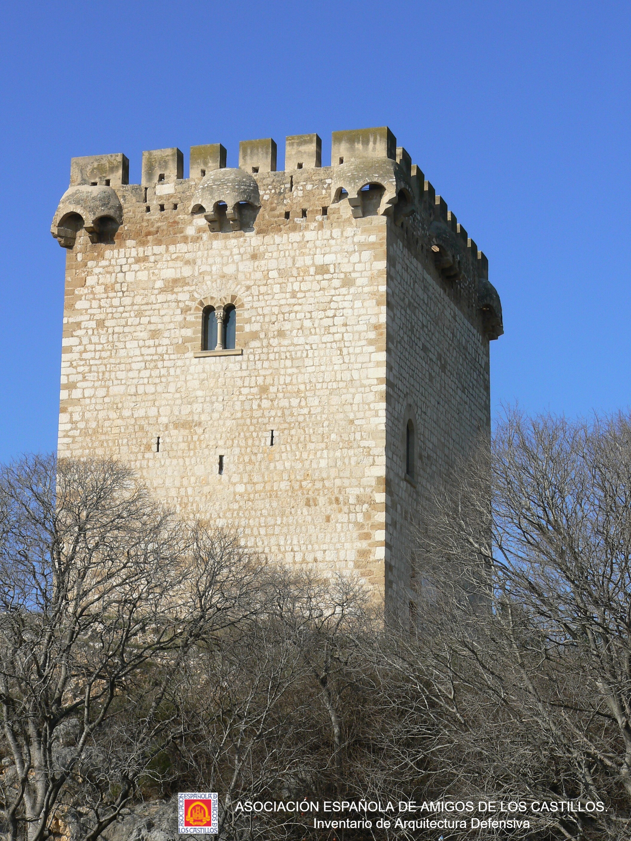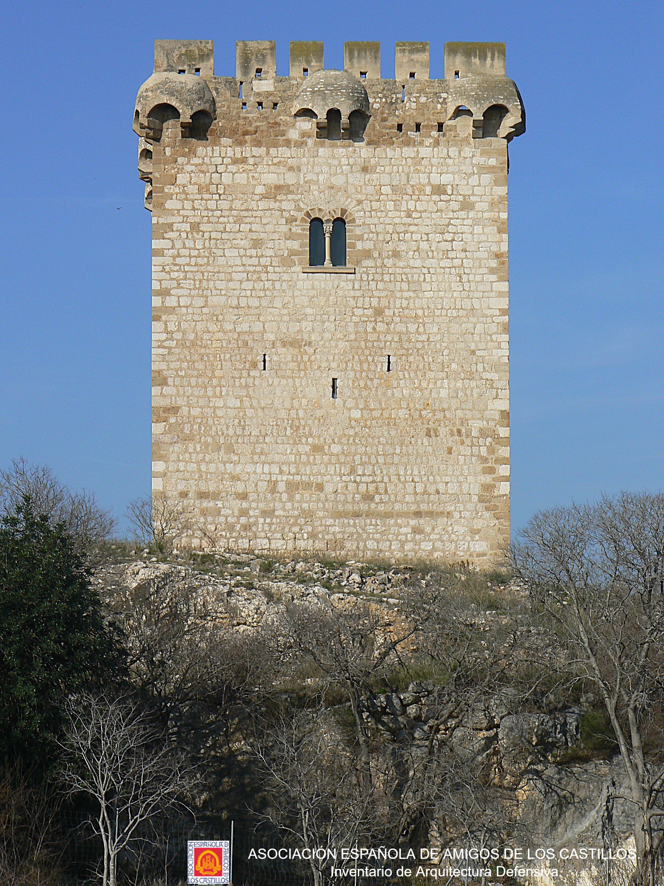 Planta rectangular de 16 por 12 metros. Altura de 17 metros. Conserva almenas, matacanes, saeteras.