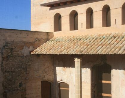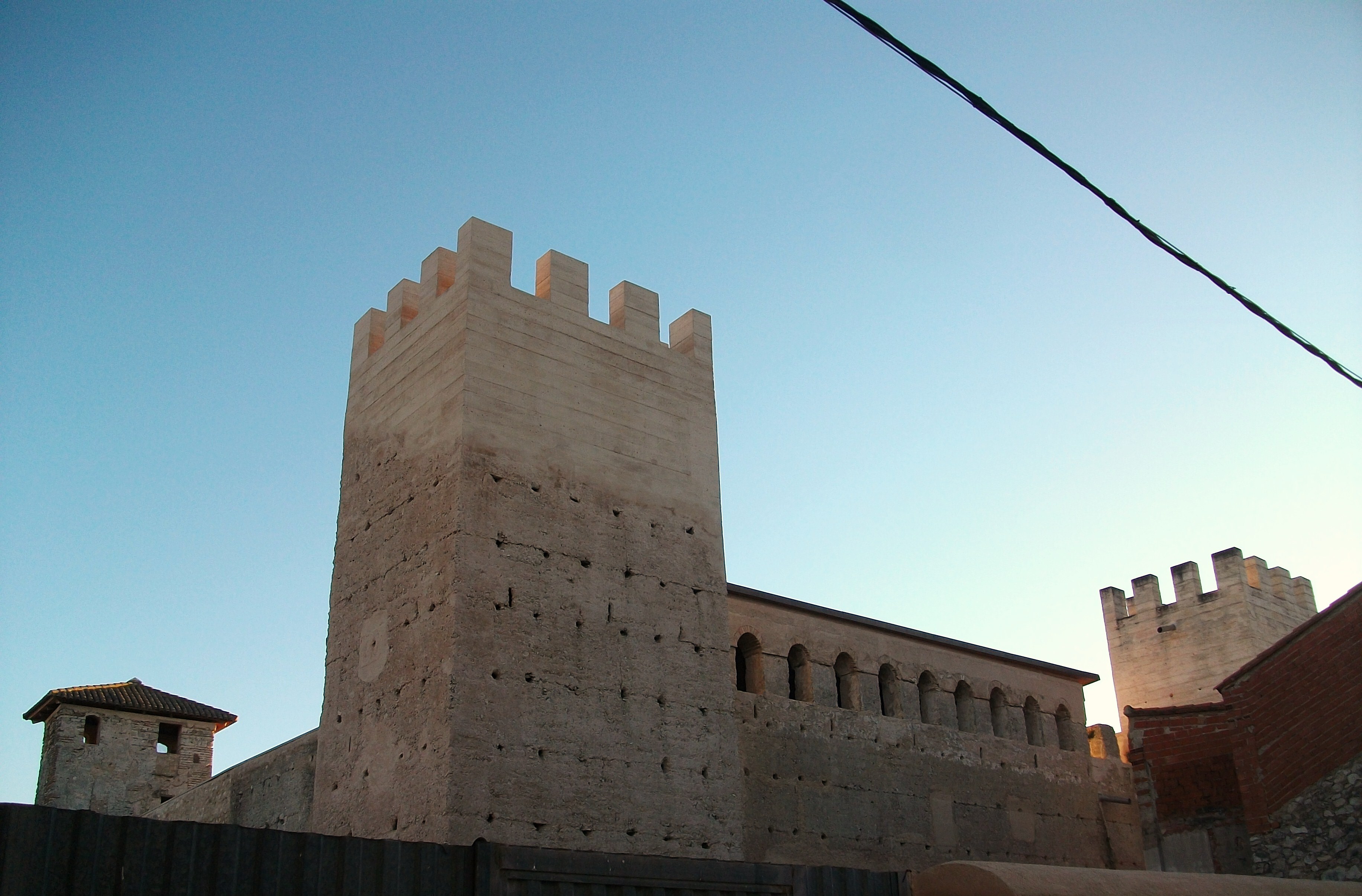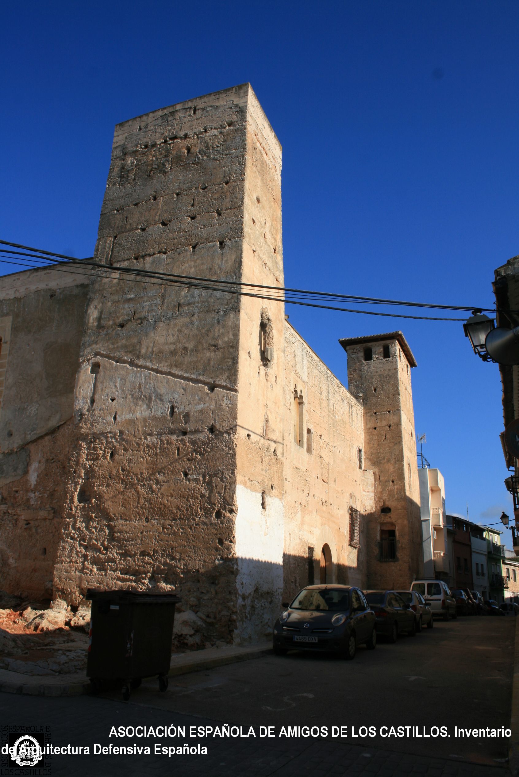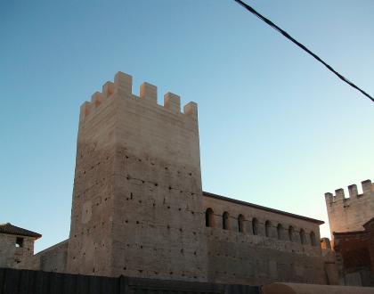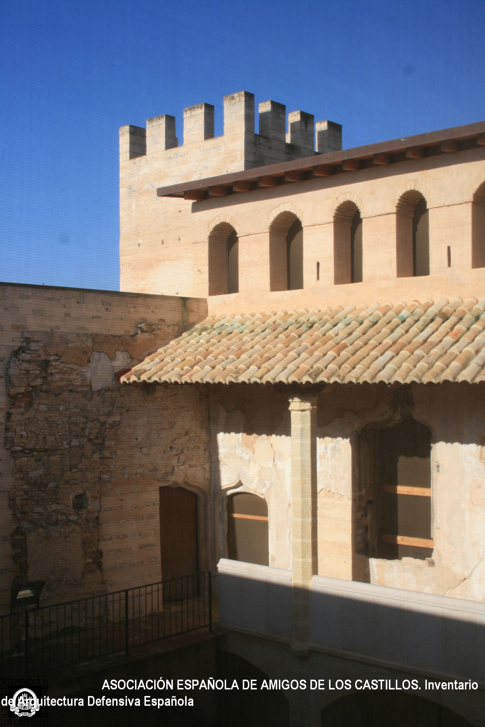 De 25 m. de lado, tiene torres rectangulares en los 4 ángulos (solo una de ellas conserva almenas). La puerta es de medio punto, las ventanas trilobuladas y geminadas, gran galería y escalera con columnas en el patio.