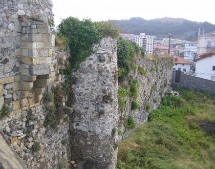 El recinto se levantó quizás aprovechando parte de la antigua muralla romana de Flaviobriga, al serle concedido a Castro-Urdiales, el Fuero de Alfonso VIII en 1163. Arrancaba de la Puerta del Torreón al este hasta cerrar la península por la zona de los Huertos. Esta acrópolis a su vez tenía muralla por la zona del itsmo y la zona sureste, sobre el primitivo puerto. La villa de Castro-Urdiales fue siempre propiedad real, salvo entre 1187-1193 y 1214-1219 que perteneció al monasterio de las uelgas.