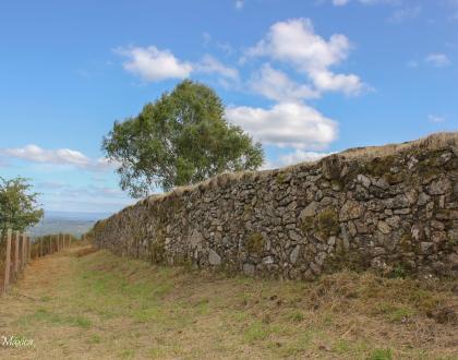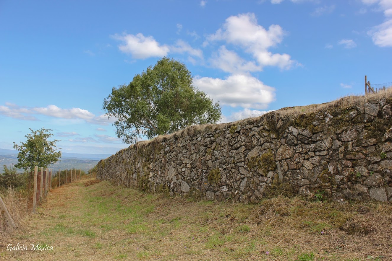 Recinto amurallado rodeando completamente el castro con una longitud total de 485 m. y rodeando una superficie de 20.000 m2.