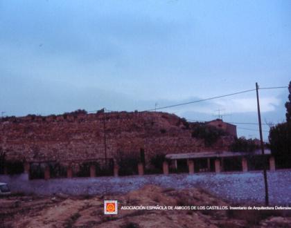 Vestigios de lienzos de murallas, principalmente en el frente sur con almenas visibles