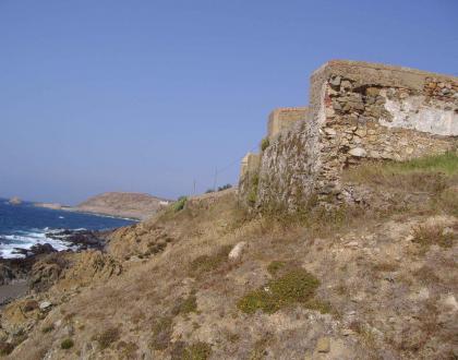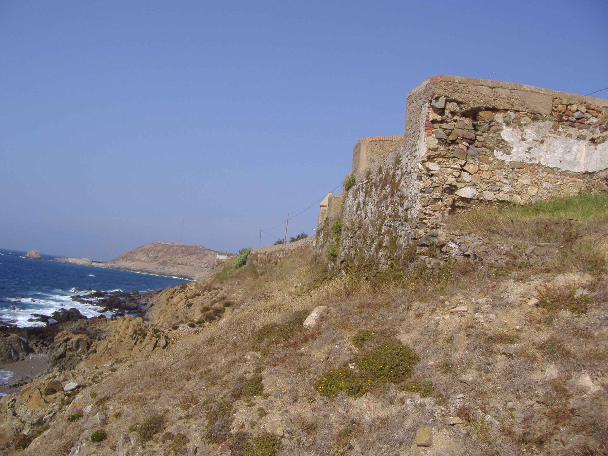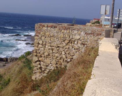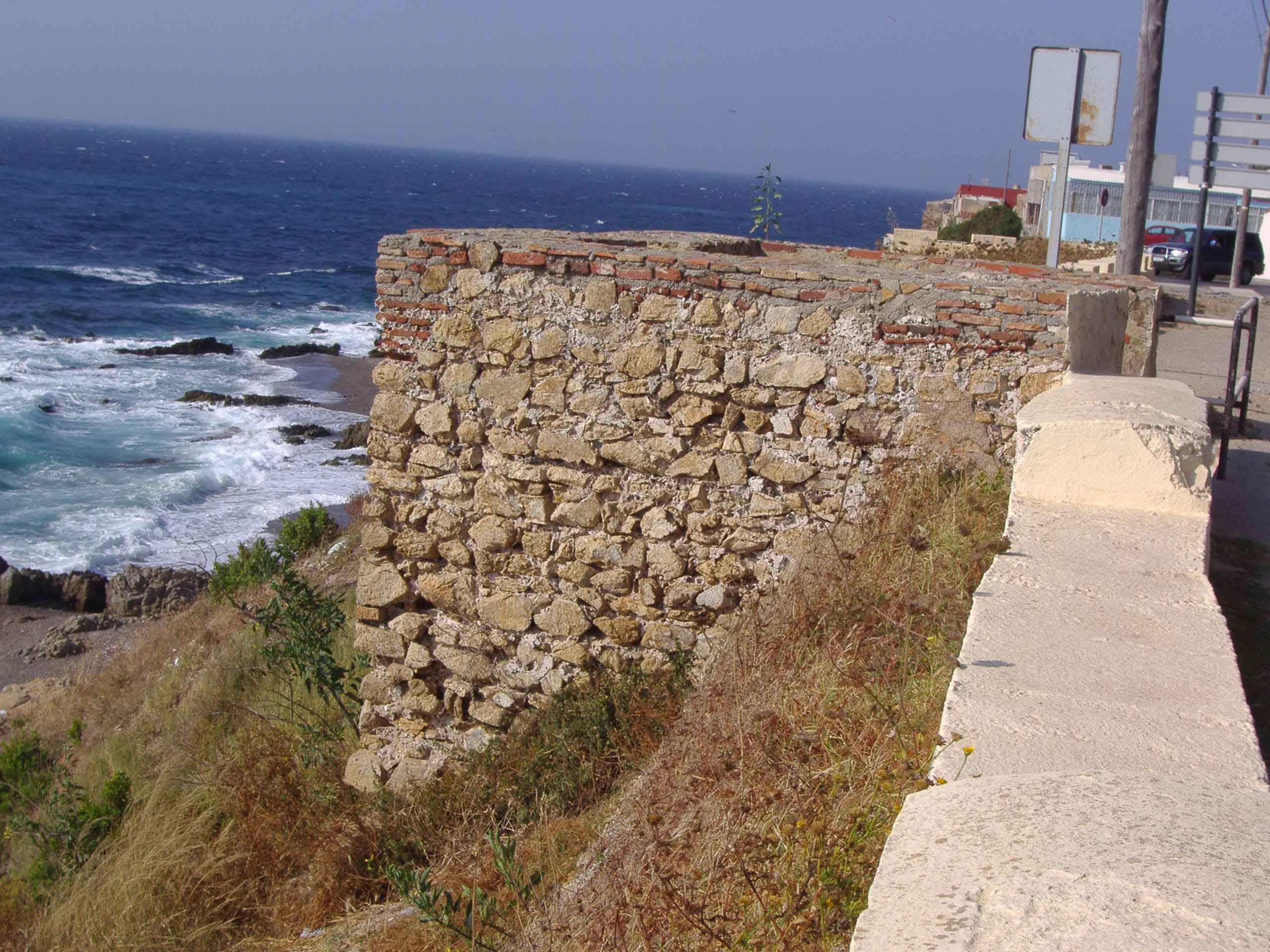 Se conservan lienzos abaluartados y torres cuadradas en los frentes norte y sur que dan al mar.