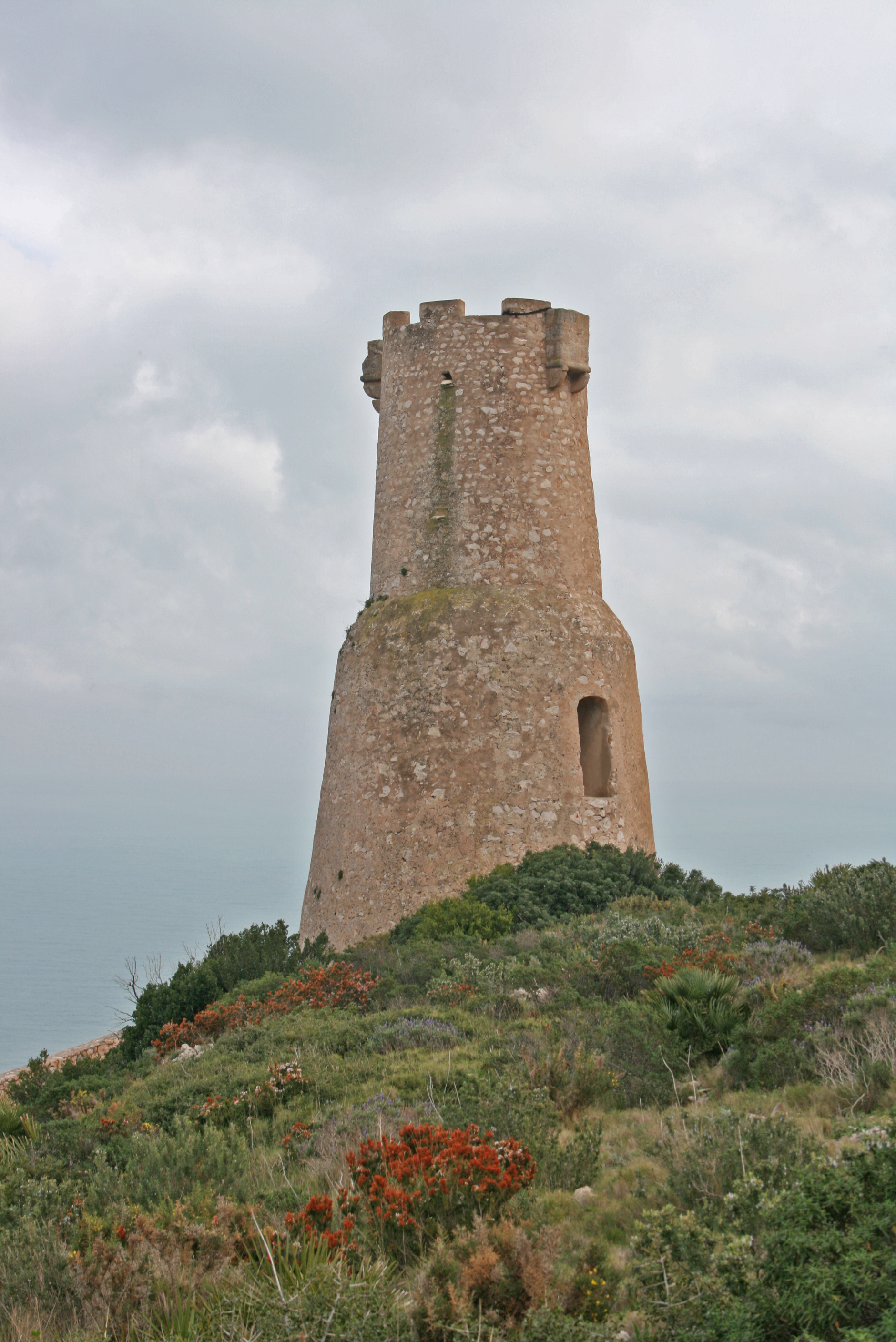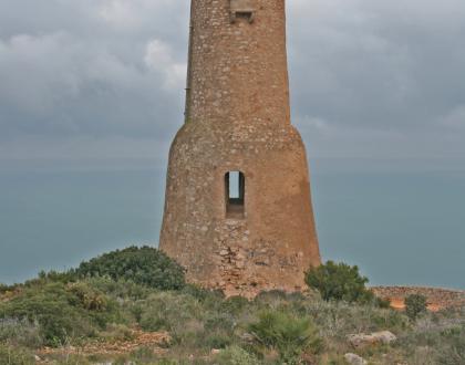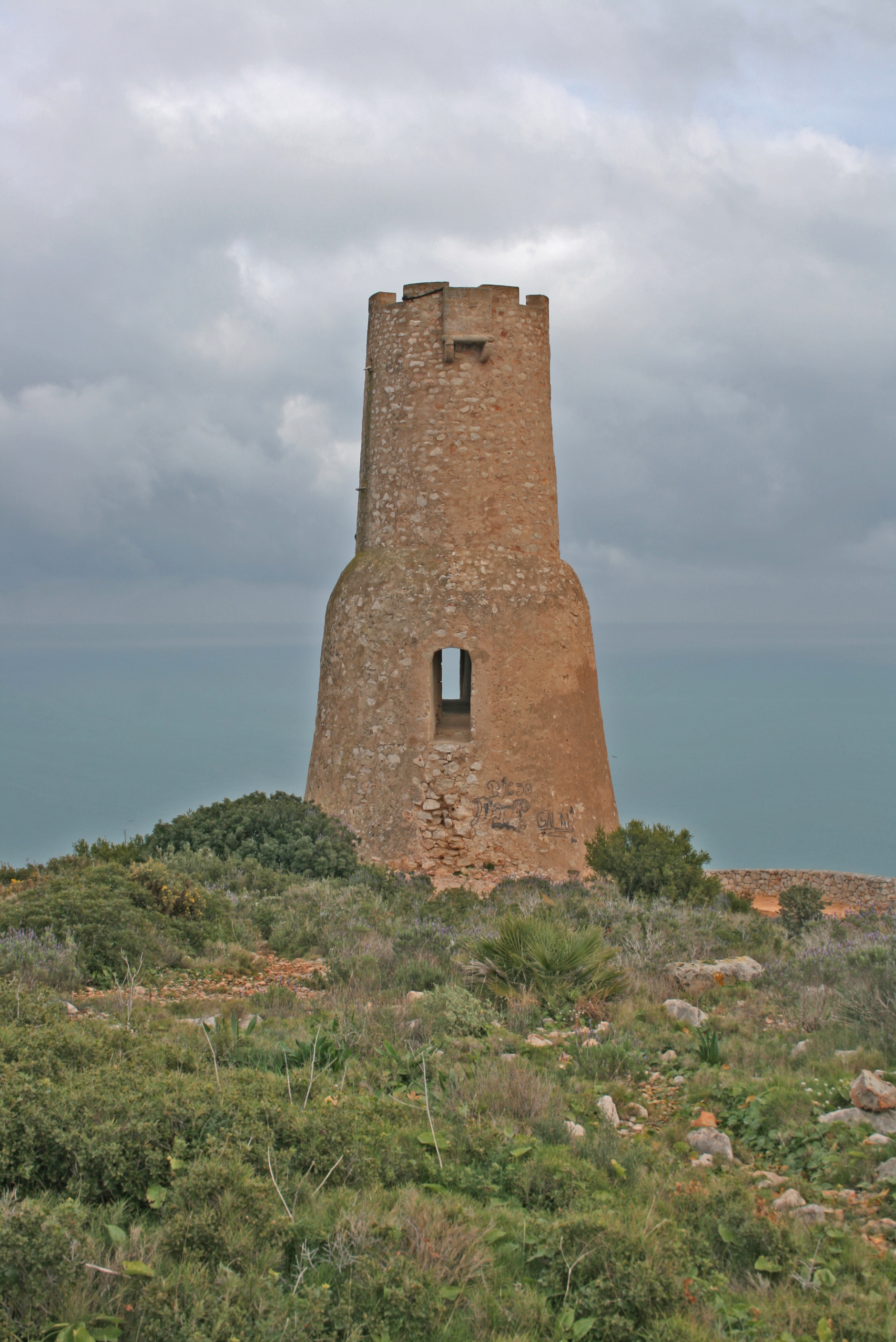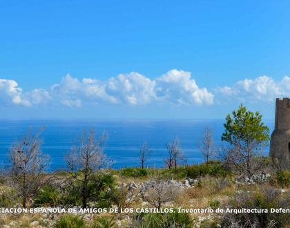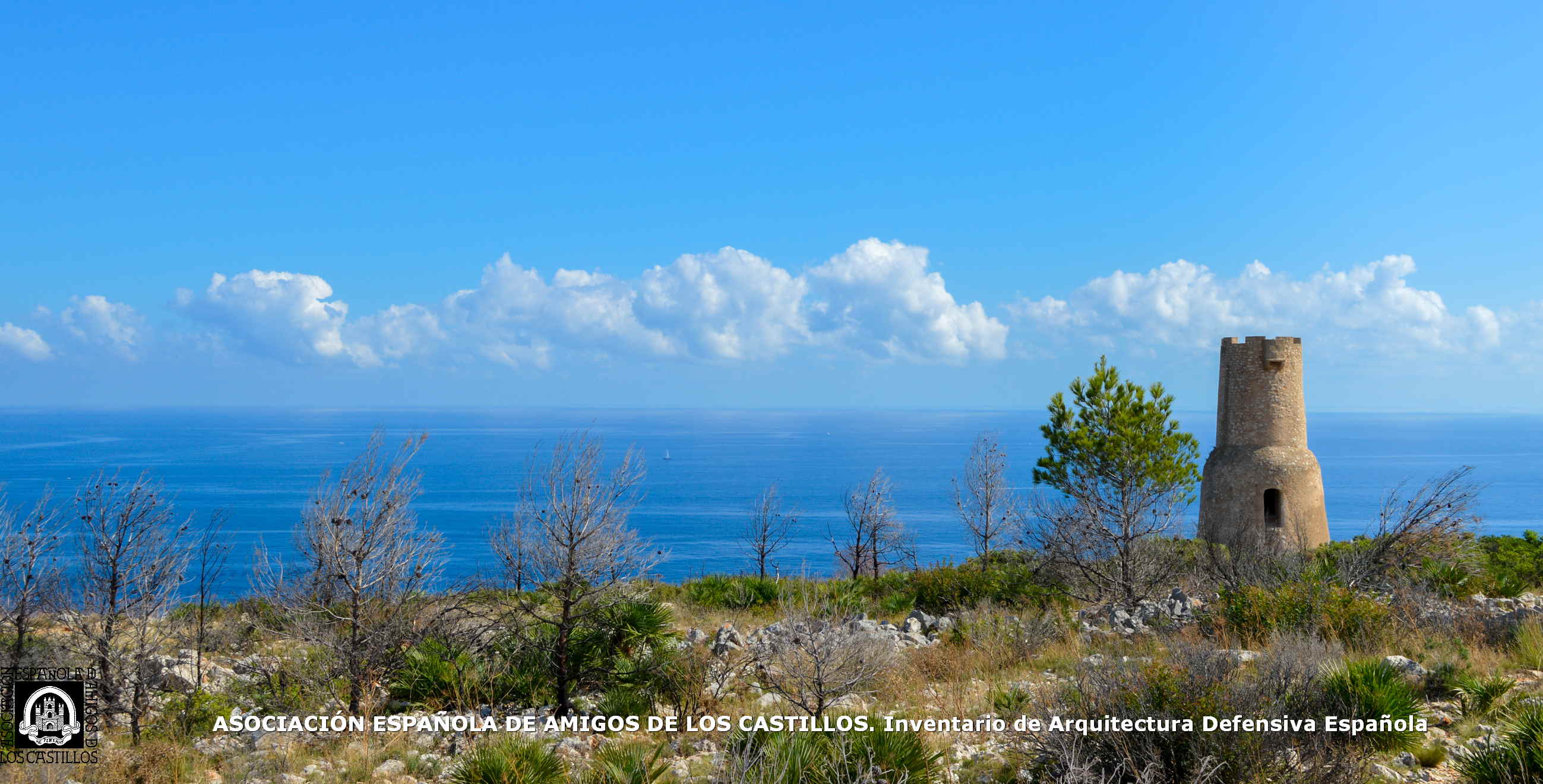 Al extremo sur de Denia, por el camino de las Rotas, tiene carretera asfaltada de subida hasta 100 m. de la torre