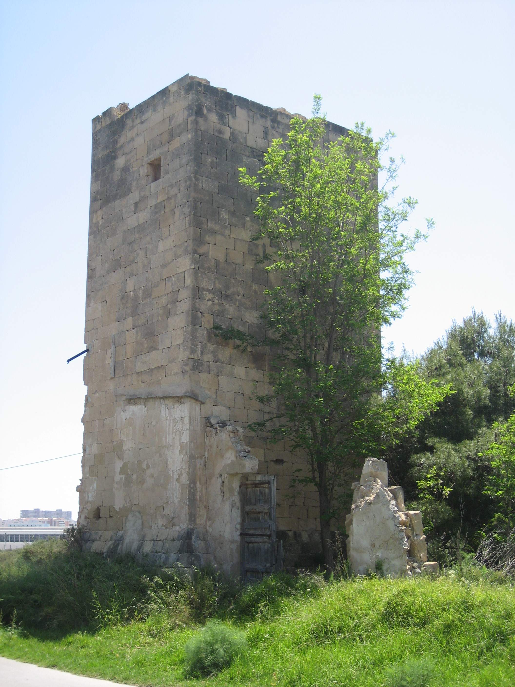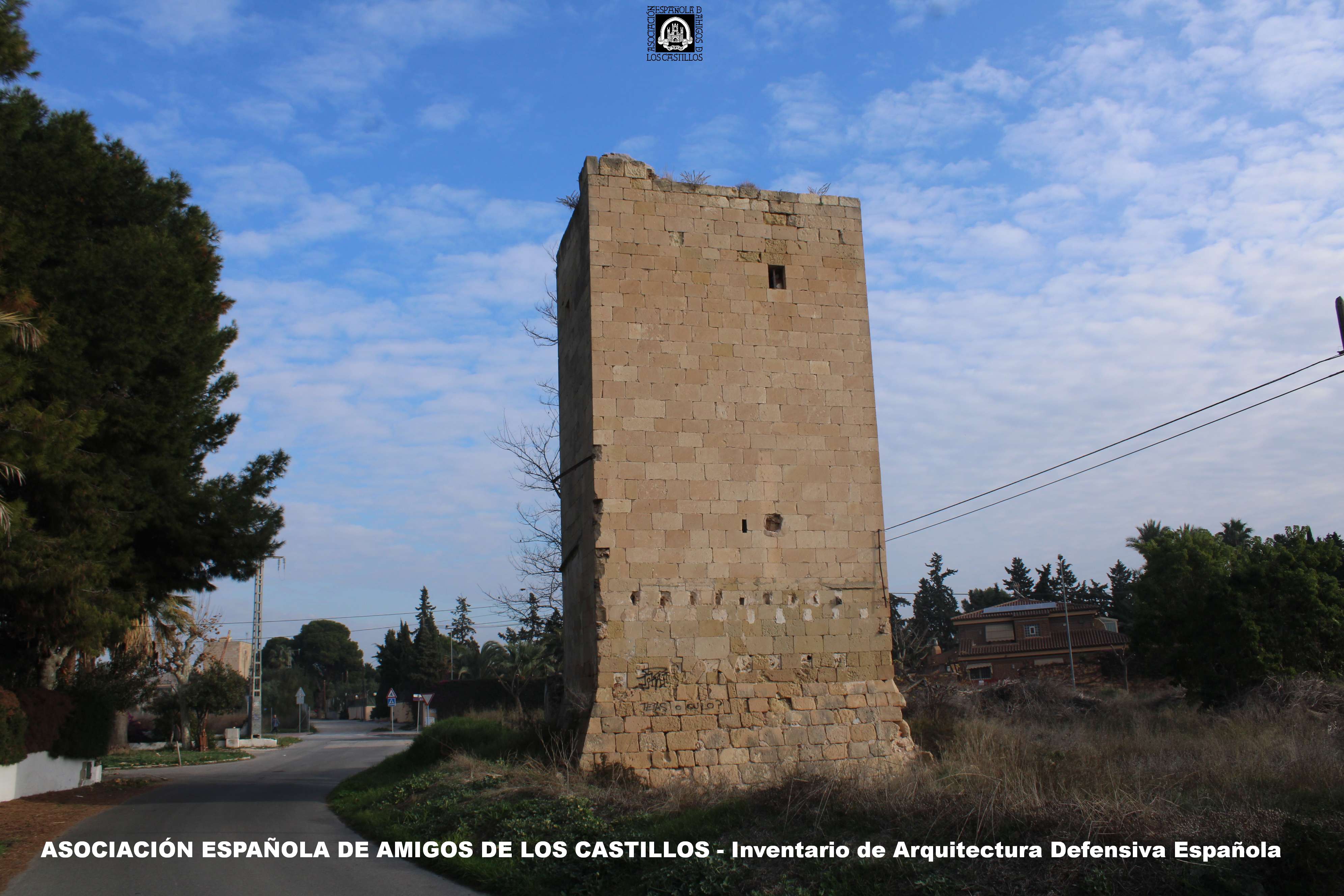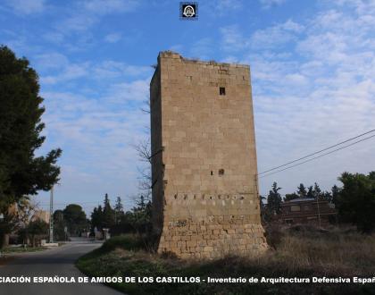Típica torre de defensa de la huerta alicantina, fechada en 1565 por una inscripción en su parte alta