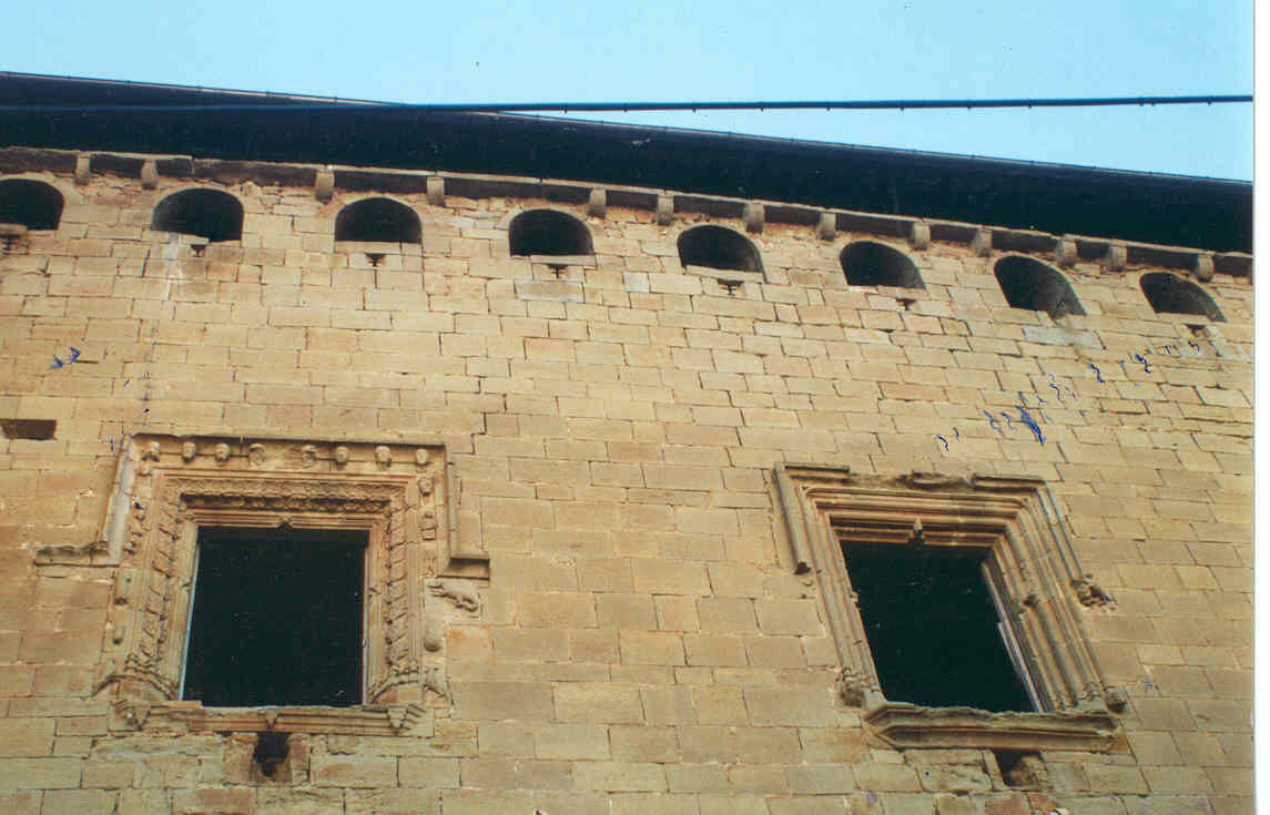 Sobre el antiguo castillo, del cual persisten importantes vestigios, se edificó el castillo-palacio renacentista, de planta cuadrada. Flanqueado por tres torres y el arranque de una cuarta, una de ellas octogonal y patio interior. Ventanas renacentistas adinteladas. En el segundo piso, en uno de los lados, galería de ventanas de medio punto, formada entre almenas.