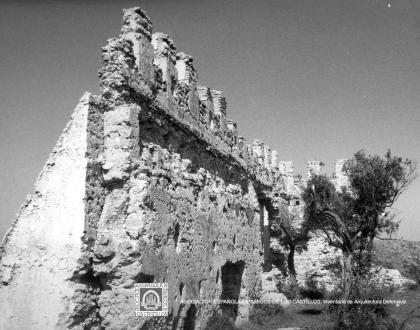 Largo recinto en cremallera con almenas aspilleradas.Coracha que termina en torre albarrana de 16 m. de alto. En el interior restos de la iglesia y otros edificios, cisterna, reducto...Se accede a él por larga entrada en codo protegida por dos cubos..