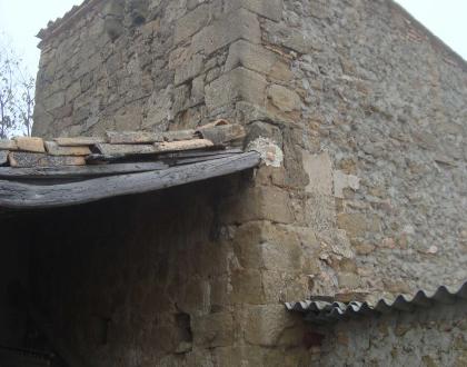 La torre, con entrada en alto, está parcialmente desmochada. Conserva restos del matacán de la planta superior que cubría su acceso. En el frente del matacán predomina la sillería, mientras que en los restantes se reserva a los ángulos, siendo el resto de mampostería. Su estado de conservación es ruina progresiva y mantiene troneras, alguna de cruz y orbe.