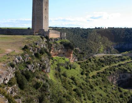 Planta pentagonal. Torre en toda su altura, escalera de acceso a la puerta, recinto exterior y foso excavado en la roca. De ella nace una coracha que desemboca en la Puerta del Campo que conduce a la Torre de Armas y permite a travesar la primera de las tres murallas.