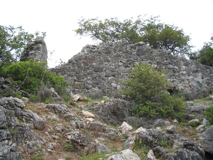 Conserva el lado norte hasta el almenado y parte de oeste, en el que se observa un vano. Tiene aljibe
