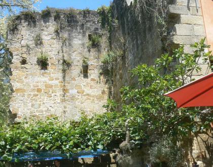 Restos de la torre con varias tronerass. Se observan restos de una herrería.