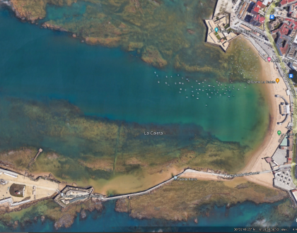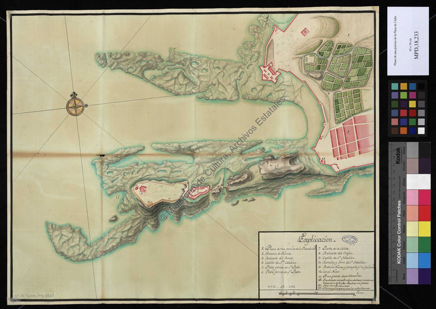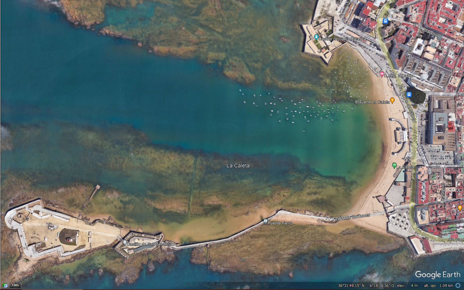 Frente de muralla que une los castillos de Santa Catalina y San Sebastián, que estaba compuesta por varias fortificaciones de menor entidad como las baterías de San Pedro y San Pablo, el baluarte del Orejón, y otras.