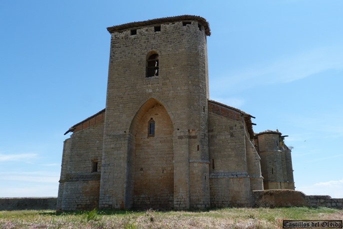 La torre de la iglesia está almenada. La iglesia también tiene almenas en algunos lugares.