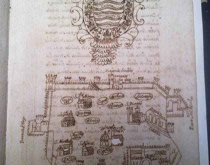 torreones cuadrados en las esquinas, barrera y foso, puertas y postigos, torre albarrana de planta octogonal,