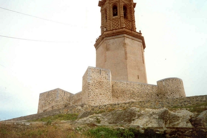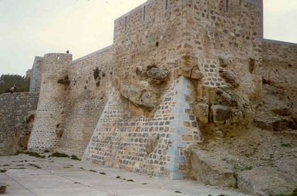De planta pentagonal, reforzado con sólidos torreones en sus esquinas.