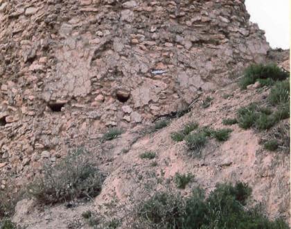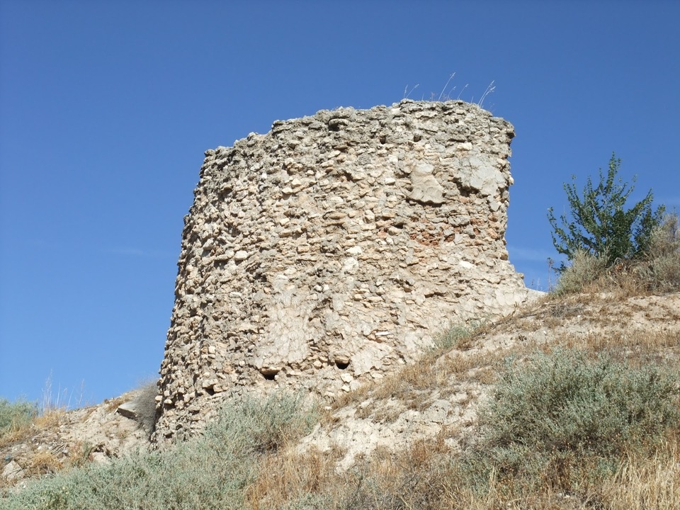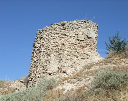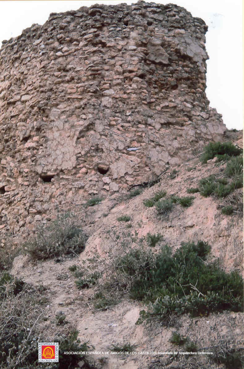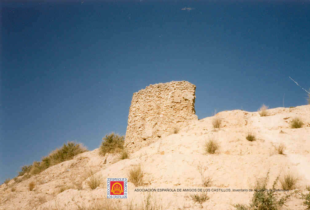 Se conservan restos de lienzos de cortina y una torre redondeada, aljibes.