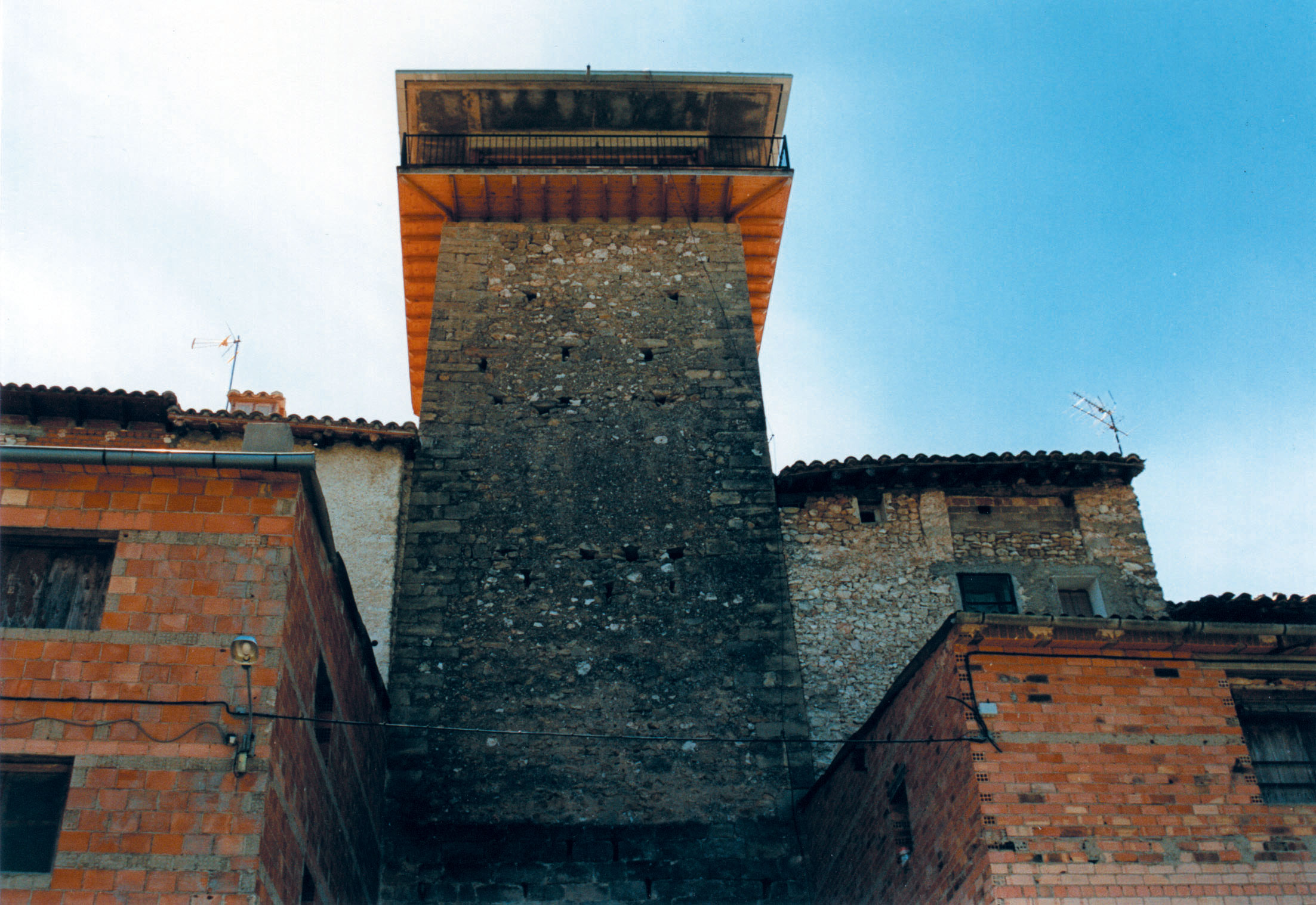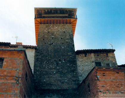 Es una torre prismática de planta cuadrangular que formó parte de la muralla o de las estructuras defensivas medievales de la población. Está realizada toda ella en piedra: mampostería en su mayor parte y sillería en algún elemento concreto como en su arco de acceso (con grandes dovelas), esquinas y dinteles de sus pequeños vanos. Presenta seis plantas de altura y perdió su remate, posiblemente almenado, que la coronaba; en la actualidad, en su última planta se observa un cadalso con balcón corrido cubierto con un tejado a cuatro vertientes.