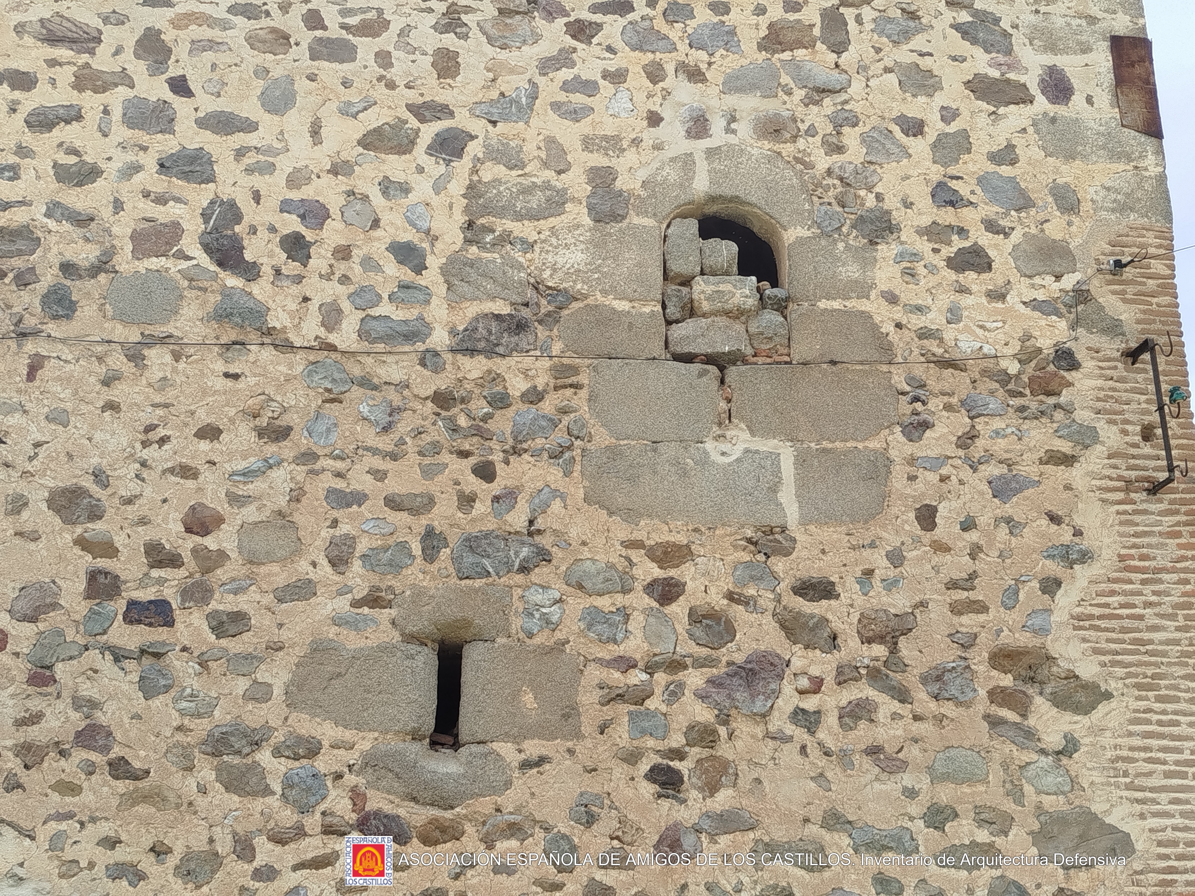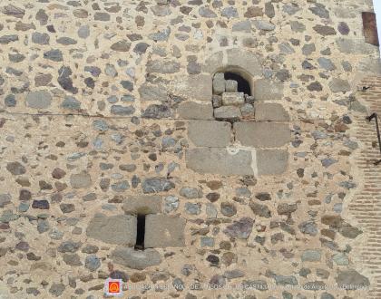Torre con ventana gótica que incluye una saetera formada por la unión de cuatro grandes sillares tallados.