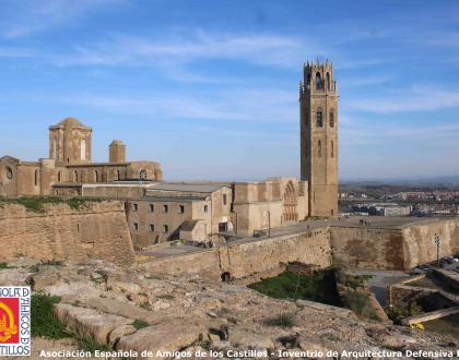 Se conservan restos de lienzos de muros y puertas.Realmente forma una ciudadela, que integra el castillo de La Zuda y la Seo o catedral. Presenta tres baluartes: de Rey, Reina y Asunción con varios semibaluartes y plataformas, falsas bragas y caminos cubiertos tres puertas.