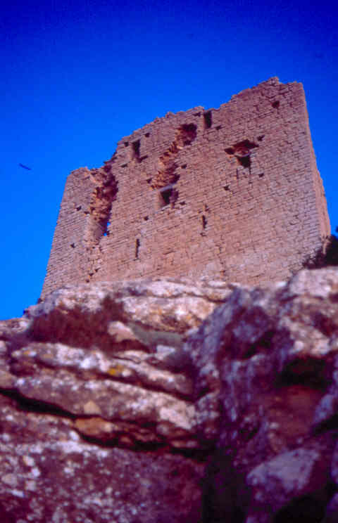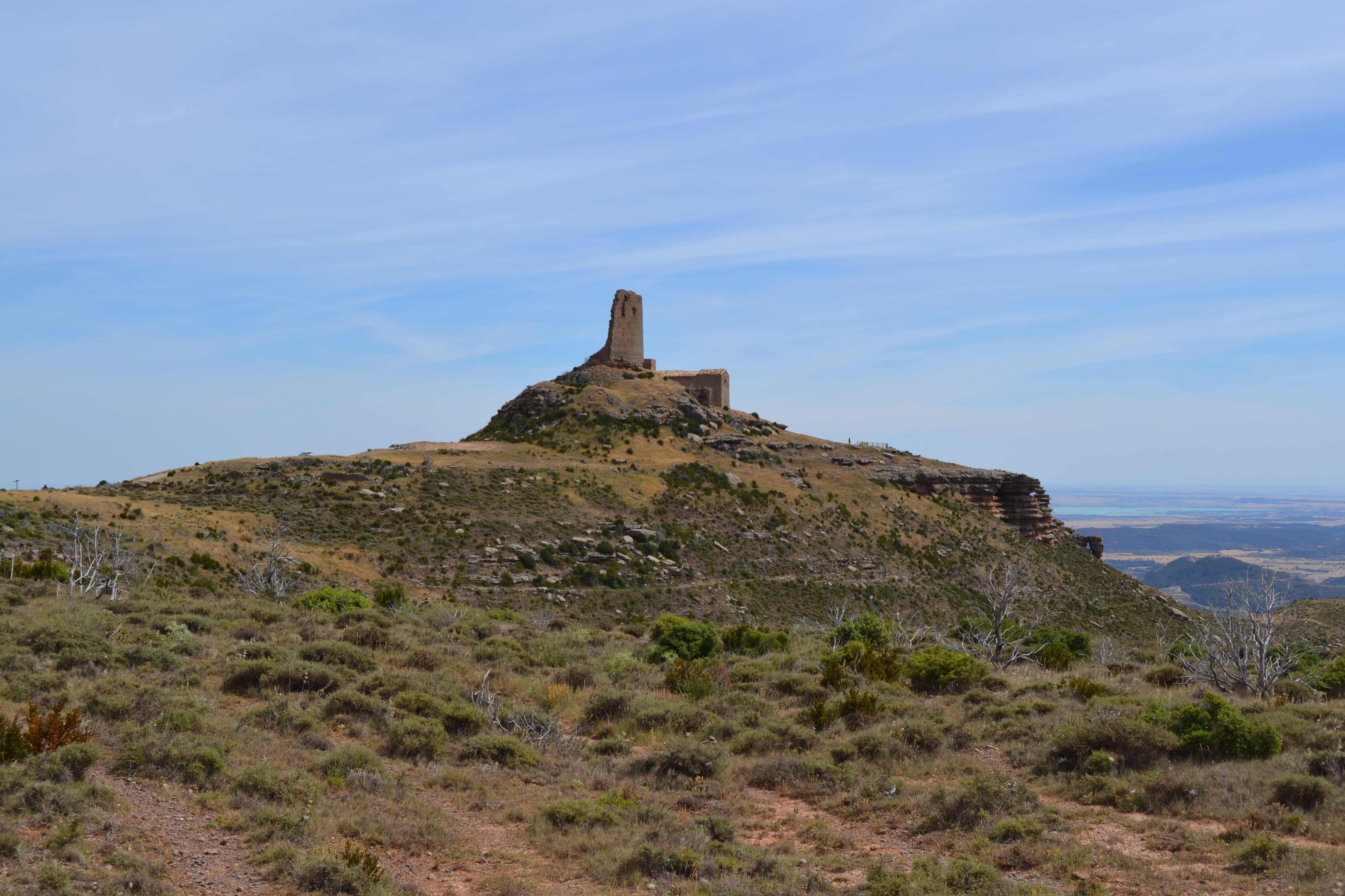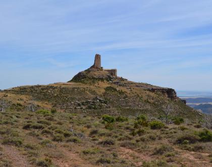 Gran torre rectangular y restos de lienzo de lo que fue el recinto murado y dos ermitas