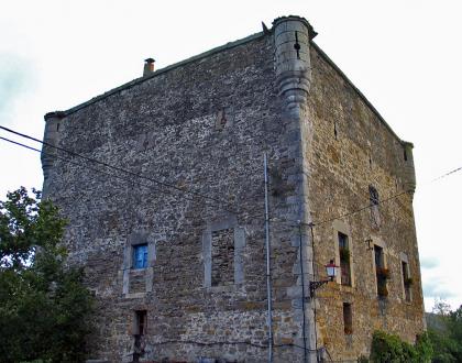 La piedra armera de la fachada señala el señorío de los Mendieta sobre la torre.