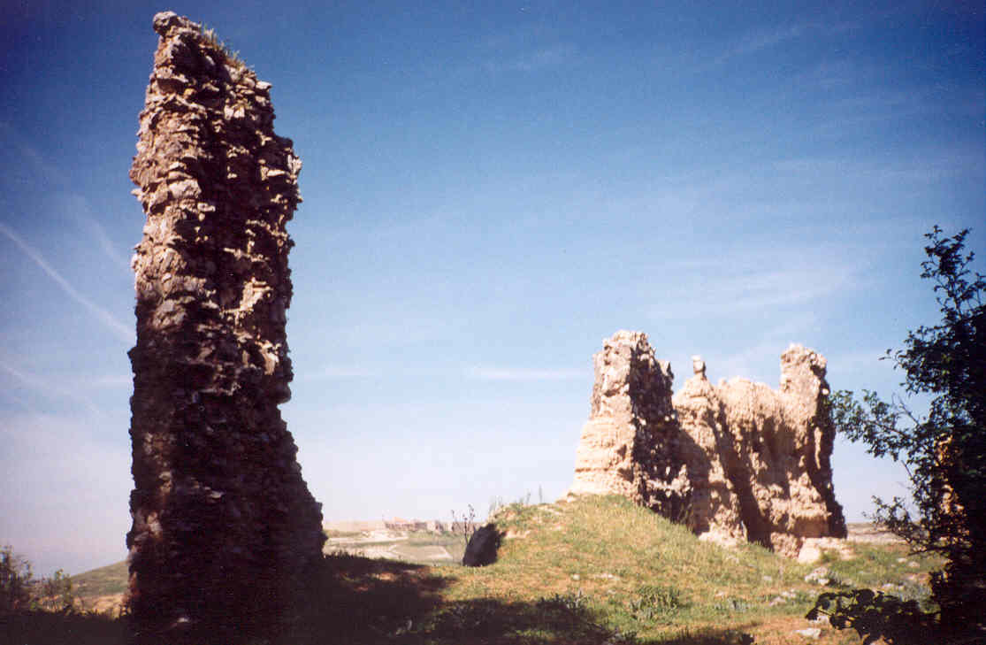 Gran muralla de 600 metros de longitud, de la puebla, y parte de las murallas, restos de torres y cámaras internas y un aljibe del castillo.