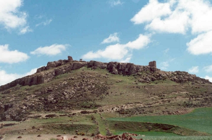 Planta oval .Quedan las bases de dos torreones rectangulares