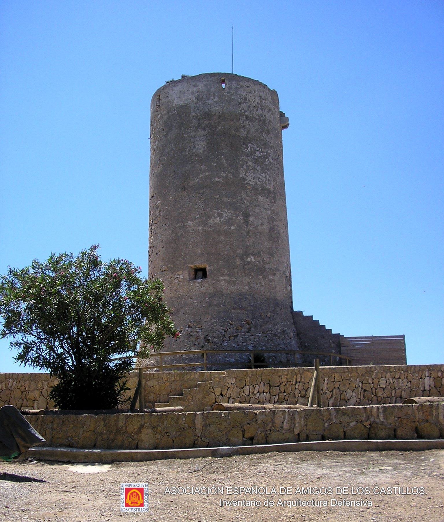 Tiene un diámetro interior de algo más de cuatro metros, muros de 1,50 de espesor, la altura alcanza los 12 metros, y la base en talud, aspilleras y matacán original.