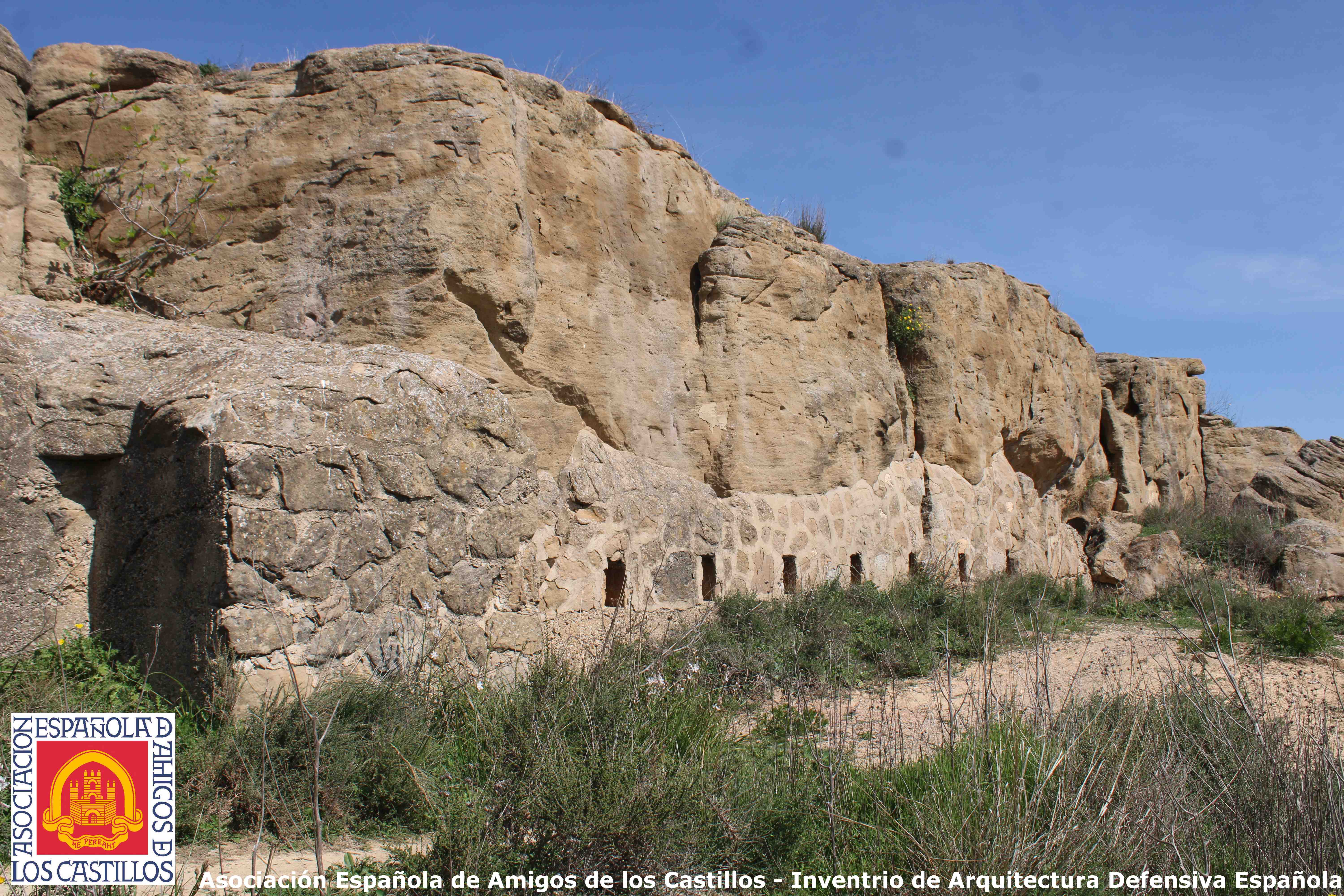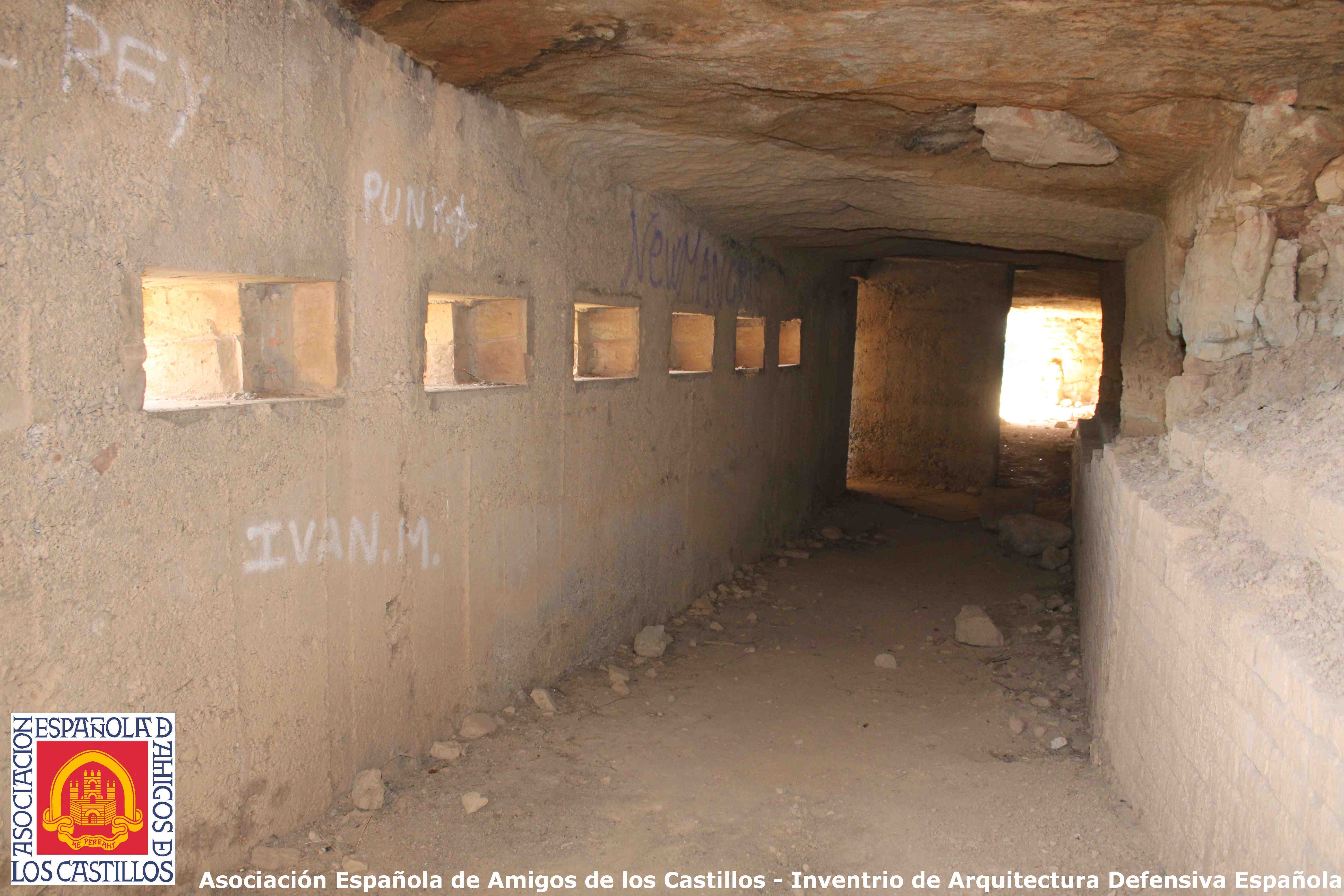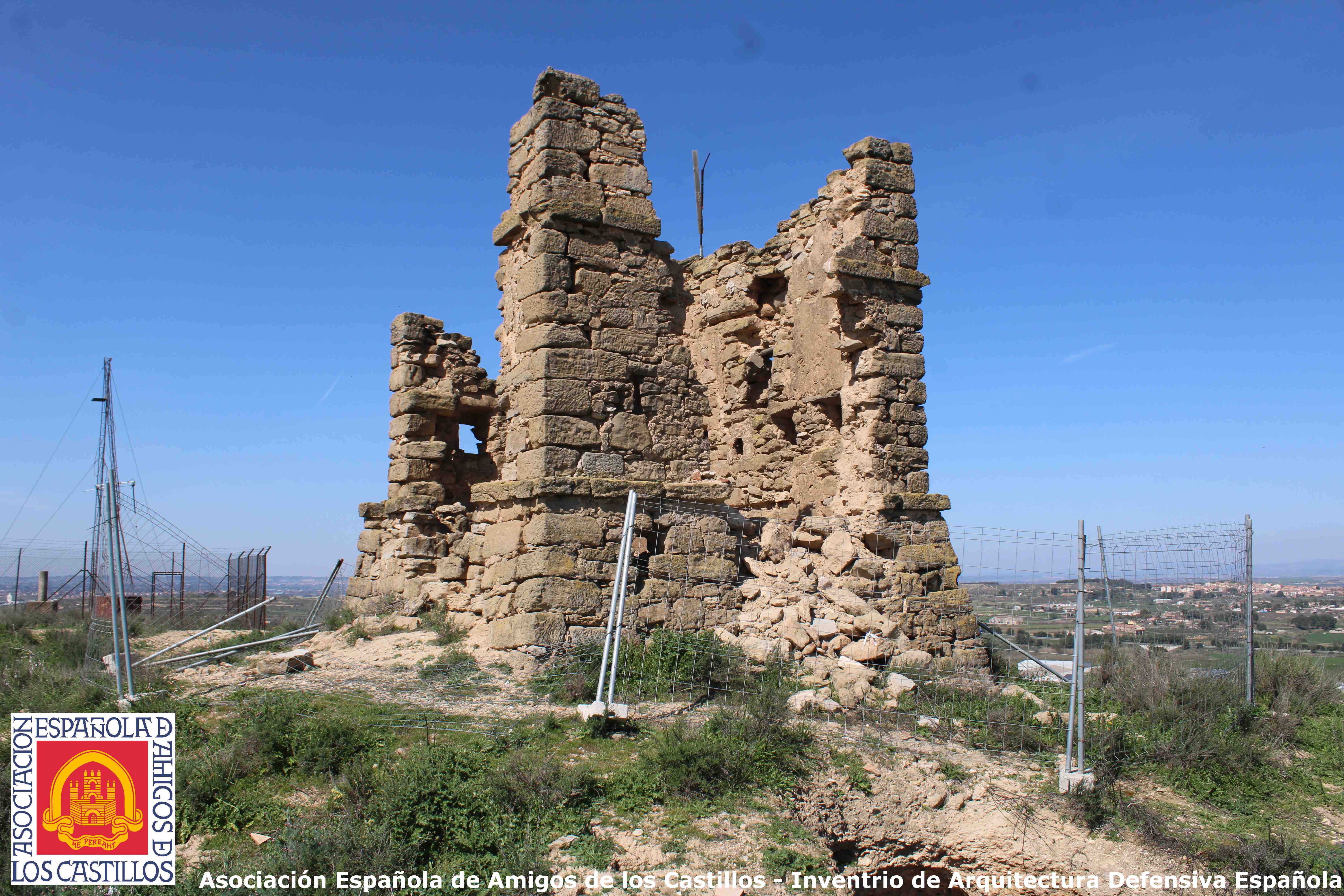 torre telegráfica según el modelo habitual de Mathé, con un nido de ametralladora de la Guerra Civil dentro. En la cresta hay otras fortificaciones de la Guerra Civil fechadas en 1938; una galería aspillerada, varios nidos de hormigón, refugios excavados, trincheras, etc.