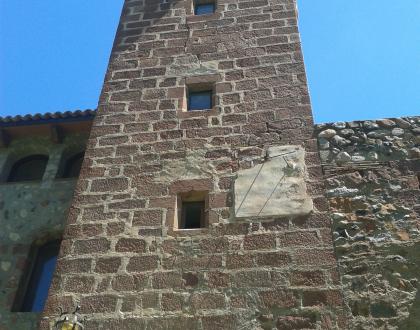 Torre con planta cuadrada de 5 x 5 metros de lado y 15 metros de altura, con matacanes.