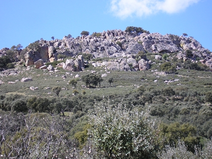 Planta topográfica. Abundantes restos de murallas y aljibe.