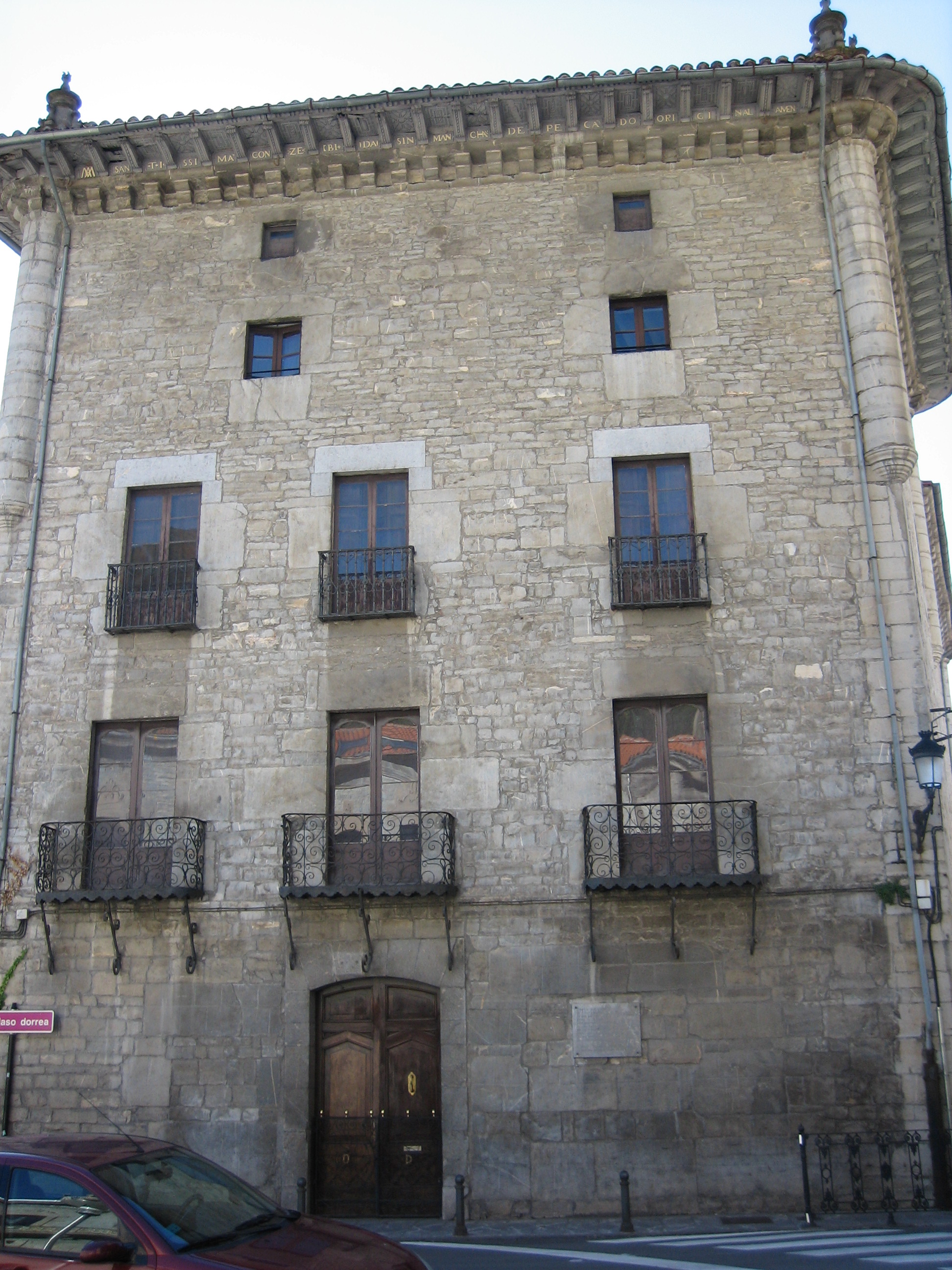 Planta baja y tres pisos. Cubierta a cuatro aguas. Pinaculos decorativos.