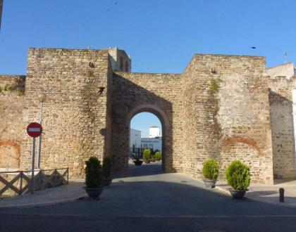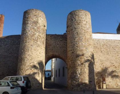 De planta cuadrada, tenía dos calles que se cortaban en el centro, con cuatro puertas. La que se conserva está defendida por dos torres redondeadas con balcón amatacanado.