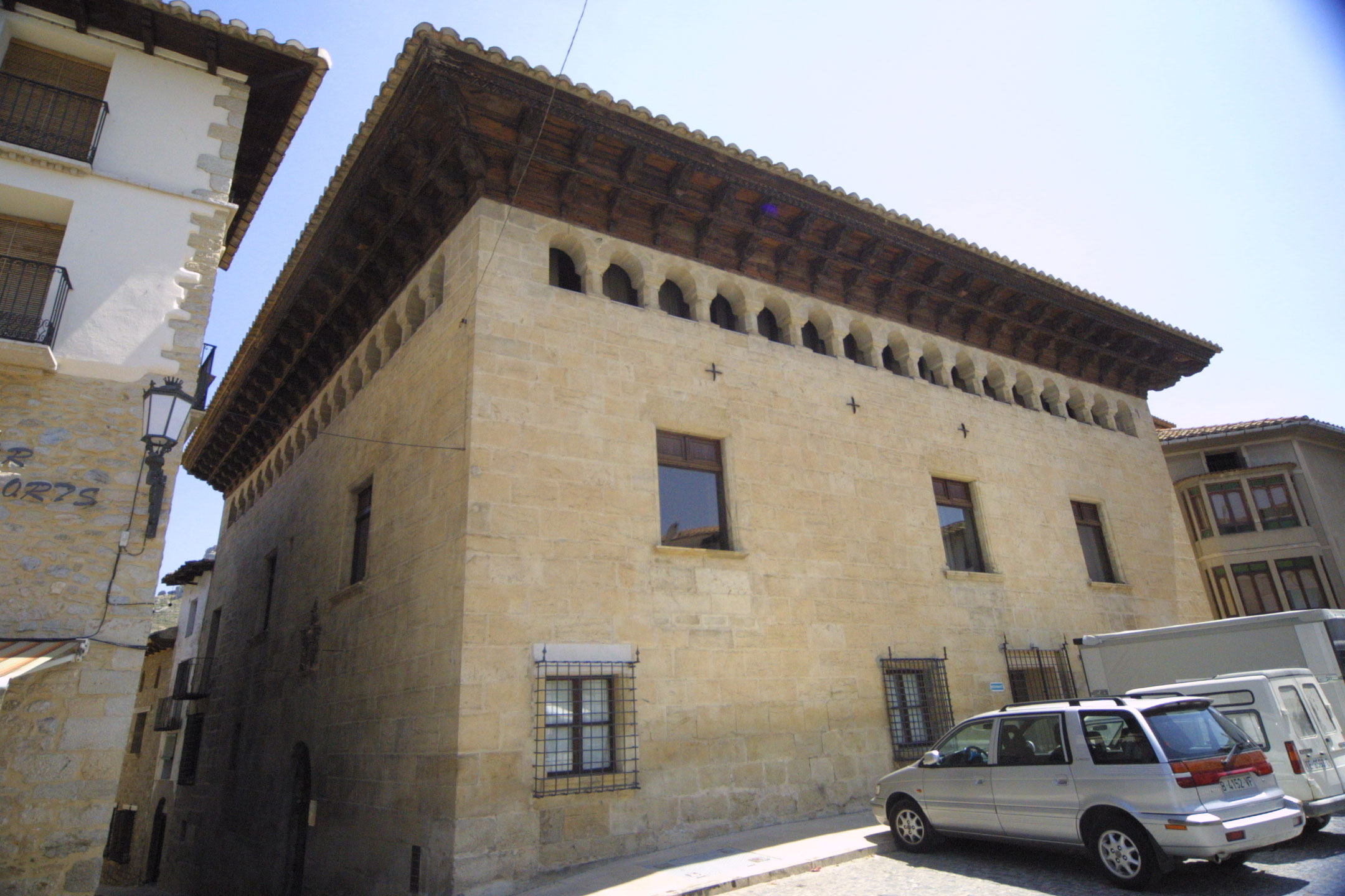 Sólo queda auténtica la preciosa fachada que mira a poniente, con puertas con arcos de medio punto con las dovelas largas, ventanas góticas, muralla en la parte oeste con puerta de medio punto. Creo que tenía foso ahora parcialmente tapiado por la maleza.