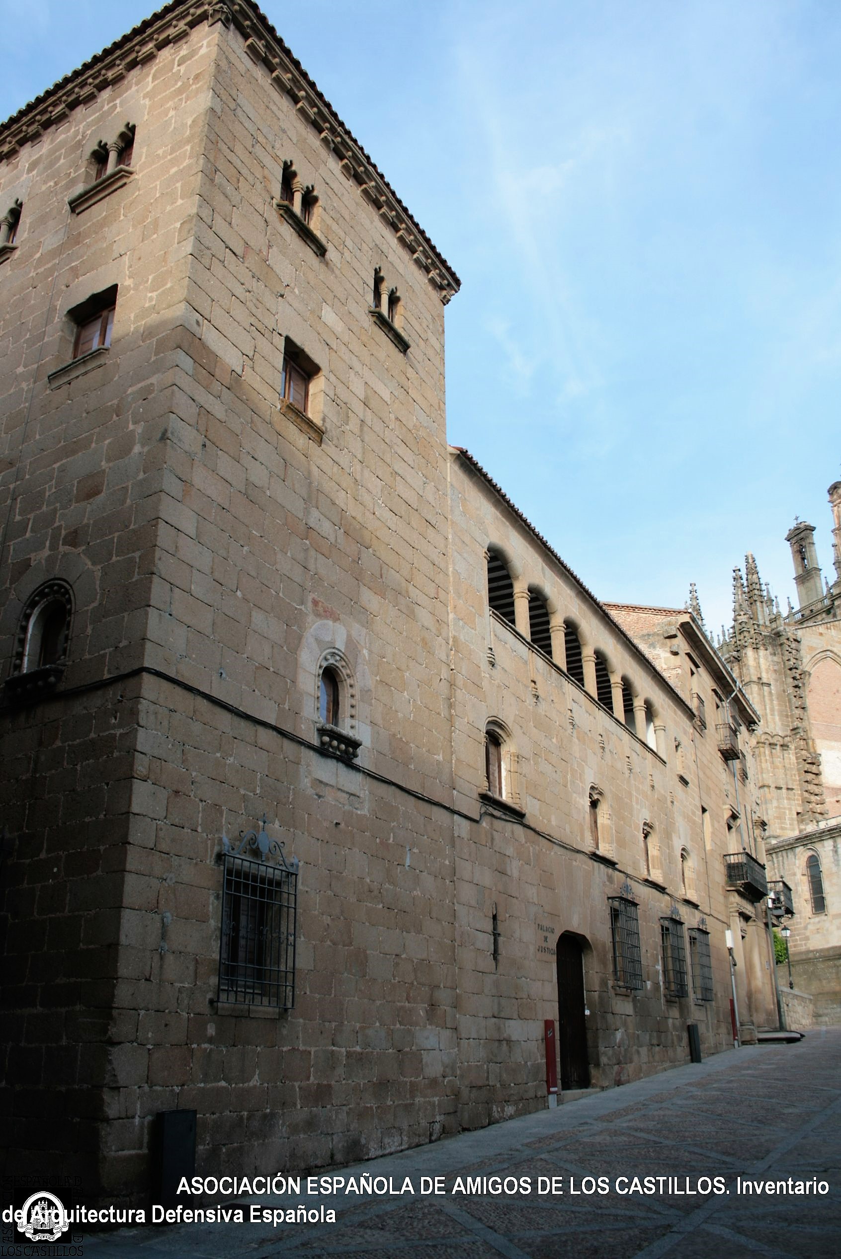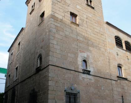 Palacio fortificado construido en el s. XV como parte de la costumbre de las familias nobles de levantar torres defensivas en las ciudades como Cáceres o Plasencia donde refugiarse de los disturbios y banderías habituales en la época.