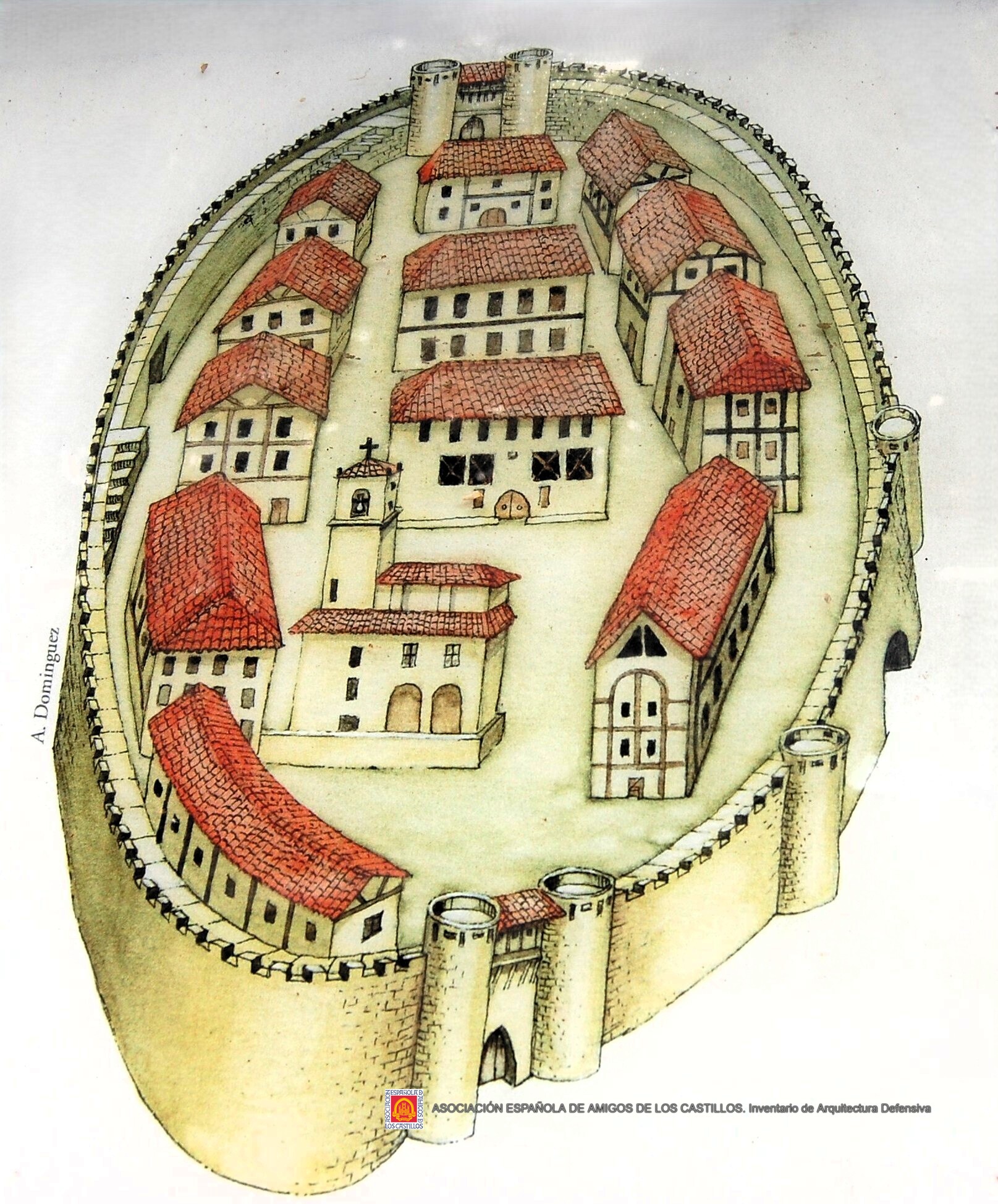 Destaca la puerta de entrada del lado sur de la villa, de arco apuntado, flanqueada por dos torreones de planta semicircular, recientemente restaurados, coronados por un cadahalso.