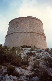 Torre de almenara para defender las costas de piratas norteafricanos, holandeses e ingleses. Se repobló la isla en el siglo XVIII, cuando se edificó la torre. Durante los siglos XIX y XX fue cuartel de la Guardia Civil.